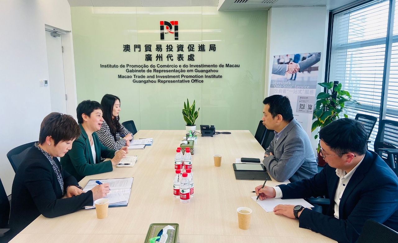 A delegação liderada pelo Presidente Substituto do Instituto de Promoção do Comércio e do Investimento de Macau (IPIM), U U Sang, realizou no dia 17 de Fevereiro uma visita a Guangdong onde se encontrou com Director e o Sub-director do Departamento do Comércio da Província de Guangdong, Zhang Jingsong e Chen Yuehua respectivamente, e o Vice-Presidente da Delegação de Guangdong do Conselho para a Promoção do Comércio Internacional da China (Guangdong CCPIT), Cui Shuang, com vista a discutir o aprofundamento conjunto da ligação entre os dois locais em termos de economia, comércio e convenções e exposições, fazer bom uso das vantagens da Grande Baía Guangdong-Hong Kong-Macau, trabalhar em colaboração para atrair investimento e comércio do exterior, bem como expandir em conjunto o espaço de desenvolvimento e reforçar a cooperação em vários aspectos. Além disso, desde 2020 até agora, o Gabinete de Representação em Guangzhou do IPIM ofereceu ajuda no encaminhamento de um total de 40 projectos de investimento de duplo sentido entre Guangdong e Macau, dos quais 34 foram concretizados, envolvendo indústrias como big health, finanças modernas, tecnologia, restauração, entre outras.