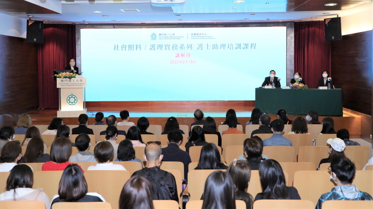 O Centro de Educação Contínua da Universidade Politécnica de Macau (CEC-UPM) criou o “Curso de Formação para Ajudante de Enfermeiro”, no sentido de proporcionar formação sistemática aos indivíduos que pretendam dedicar-se ao apoio aos cuidados de saúde nas instituições de saúde. A fim de aprofundar os conhecimentos dos candidatos sobre os objectivos do Curso, o plano de formação e as formalidades de inscrição, realizou-se recentemente na mesma Universidade uma sessão de esclarecimento sobre o “Curso de Formação para Ajudante de Enfermeiro”, tendo atraído a participação de um grande número de profissionais do sector e de outros interessados neste Curso.