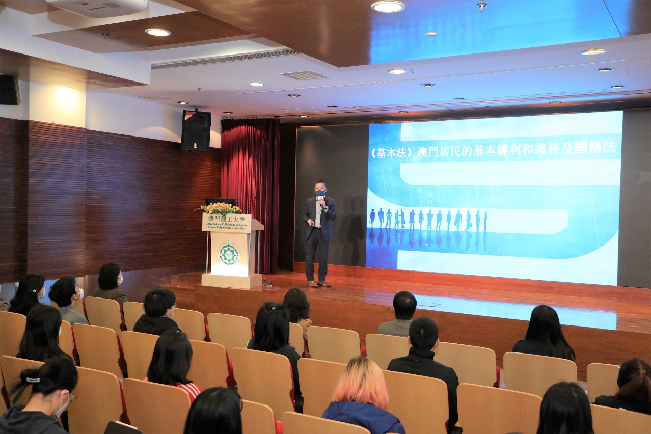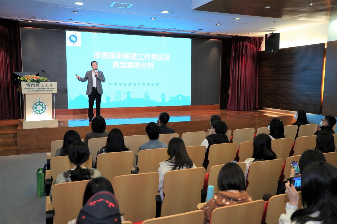 Para reforçar os conhecimentos dos estudantes universitários sobre a Lei Básica, Lei da Nacionalidade e os serviços de protecção consular, no dia 22 de Fevereiro, a Divisão de Assuntos dos Estudantes da Universidade Politécnica de Macau realizou uma palestra intitulada “Direitos e Deveres dos Residentes de Macau no âmbito da Lei Básica, Lei da Nacionalidade e Protecção e Assistência Consulares”. O Primeiro Secretário do Departamento dos Assuntos Consulares do Comissariado do Ministério dos Negócios Estrangeiros da República Popular da China na RAEM, Wang Xiaochu, e o Chefe do Departamento de Identificação de Residentes da Direcção dos Serviços de Identificação da RAEM, Lau David, foram convidados a dar esta palestra. A Secretária-Geral da Universidade Politécnica de Macau, Lei Vai Fong, e mais de uma centena de professores e alunos estiveram presentes no evento, tendo o evento sido realizado num ambiente agradável e de grande entusiasmo de intercâmbio.