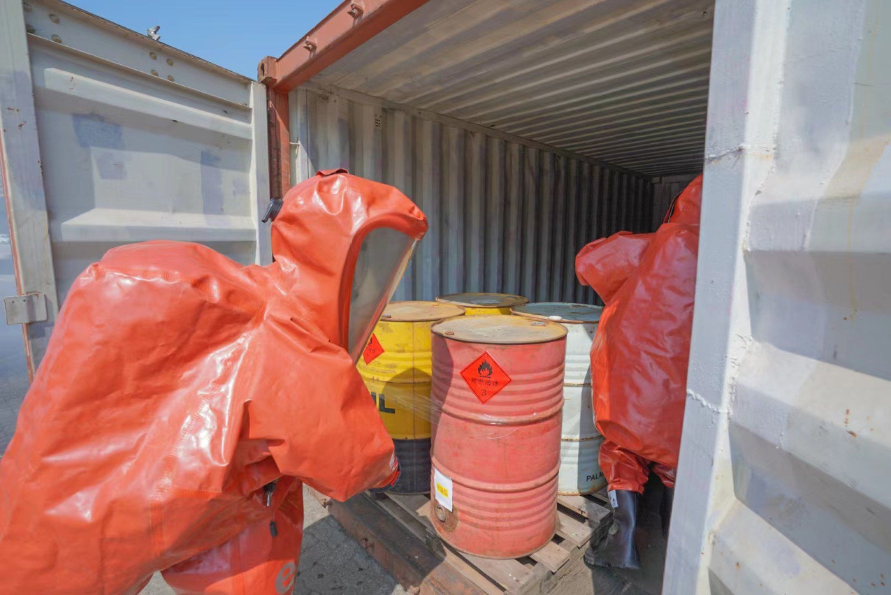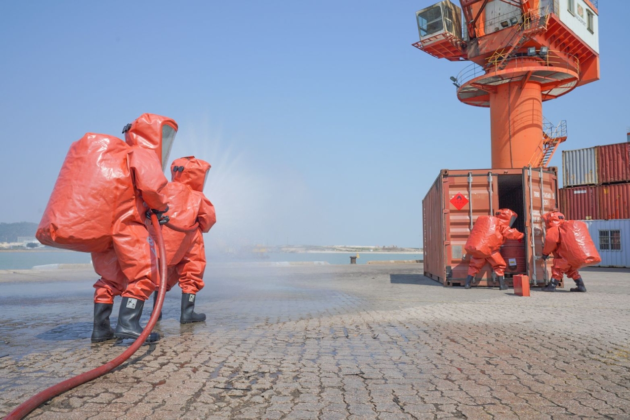 O exercício simulou que teve lugar no Cais de Contentores do Porto de Ká-Hó, onde suspeitou de fuga em um contentor que carregava o tolueno durante o processo de carga e descarga realizado no contentor para substâncias perigosas, o trabalhador que se encontrava no local relatou a situação à sociedade do cais e ligou imediatamente para o CB para pedir auxílio. A sociedade do cais evacuou o respectivo pessoal para o local de evacuação e encontro conforme o plano de emergência interno. Depois do alarme, o CB enviou logo 9 veículos de socorro e 39 bombeiros para acorrerem ao local, com vista a proceder ao tratamento da substância perigosa e efectuar os trabalhos de socorro. Durante o processo, os socorristas executaram uma enfermagem junto de um indivíduo suspeito de inalação inadvertida do gás tóxico, que simulou ser transportado para o hospital para o tratamento.