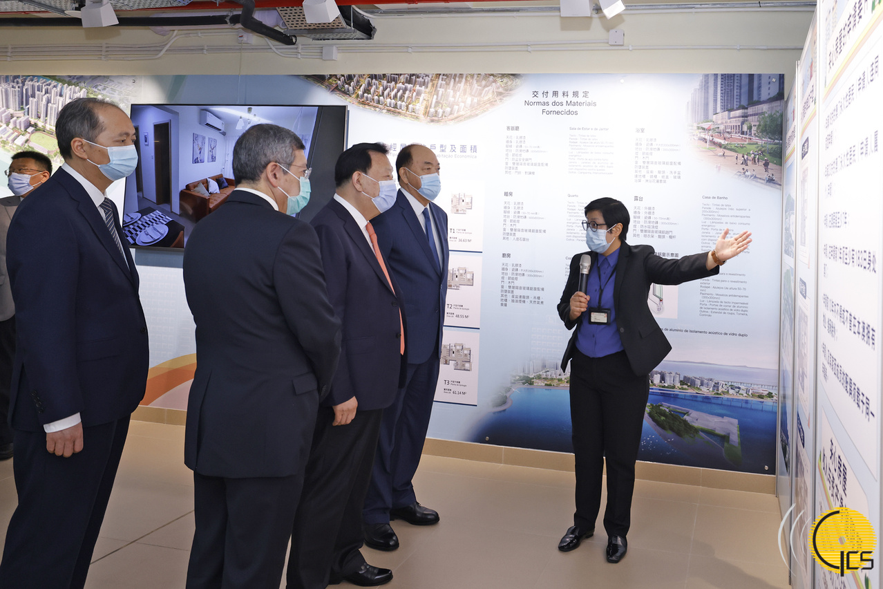 O vice-presidente da 13ª Conferência Consultiva Política do Povo Chinês (CCPPC) e director do Gabinete dos Assuntos de Hong Kong e Macau junto do Conselho de Estado, Xia Baolong, acompanhado pelo Chefe do Executivo, Ho Iat Seng, pelo director do Gabinete de Ligação do Governo Central na RAEM, Zheng Xincong, e pelo secretário para os Transportes e Obras Públicas, Raimundo do Rosário, visitou esta tarde (25 de Maio) as fracções-modelo de apartamentos de habitação pública em Mong-Há e a zona de demonstração de projectos de habitação.