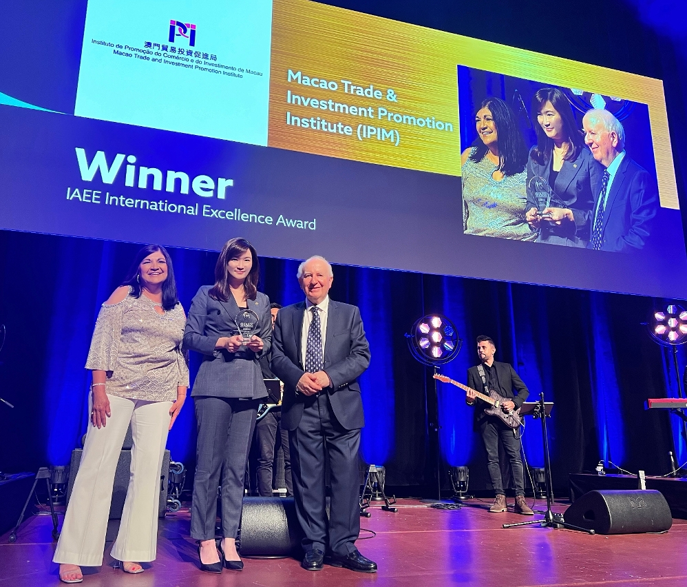 A Associação Internacional de Exposições e Eventos (IAEE, na sigla inglesa) é uma das organizações mais influentes na indústria de convenções e exposições no mundo, tendo recentemente atribuído, na Alemanha, ao Instituto de Promoção do Comércio e do Investimento de Macau (IPIM) o “Prémio de Excelência Internacional da IAEE” (IAEE International Excellence Award). Es prémio reconhece os progressos excepcionais que o membro da IAEE tenha realizado nas áreas como a internacionalização dos eventos de convenções e exposições, a formação de profissionais do sector e o efeito impulsionador do desenvolvimento das indústrias relacionadas, entre outras.