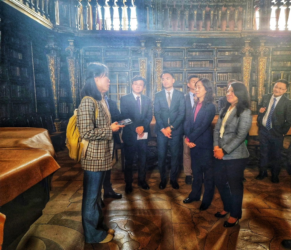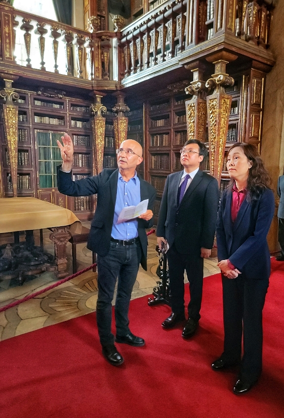 Após a cerimónia de inauguração, a delegação presidida pela Secretária Ao Ieong U deslocou-se à Biblioteca Joanina, estabelecida em 1728 na Universidade de Coimbra, visitando a biblioteca e assistindo também à apresentação pela equipa de investigação científica da UPM do “Canarin: A cloud-based realtime environmental monitoring system” (“Sistema de Monitorização Ambiental em Tempo Real baseado em Nuvem - Canarin”), aplicado nesta Biblioteca e desenvolvido por professores e estudantes do Curso de Informática da UPM. Através da recolha de dados ambientais, este sistema procede à conservação das construções com grande valor histórico e cultural, tais como a Biblioteca Joanina e o Museu da Ciência da Universidade de Coimbra. Esta tecnologia patenteada foi exposta no Fórum Ambiental da Cimeira do G7, realizado na Itália, e actualmente está a ser utilizada na Universidade de Bolonha (Itália), no Centro Histórico de Bolonha, na Universidade de Paris (França) e na Universidade de Ciência e Tecnologia da Ásia (Tailândia), de modo a promover efectivamente os trabalhos de conservação e protecção do património cultural, contribuindo para o desenvolvimento sustentável de uma cidade com as condições ideais de vida, e tem sido muito elogiado por parte dos utilizadores.