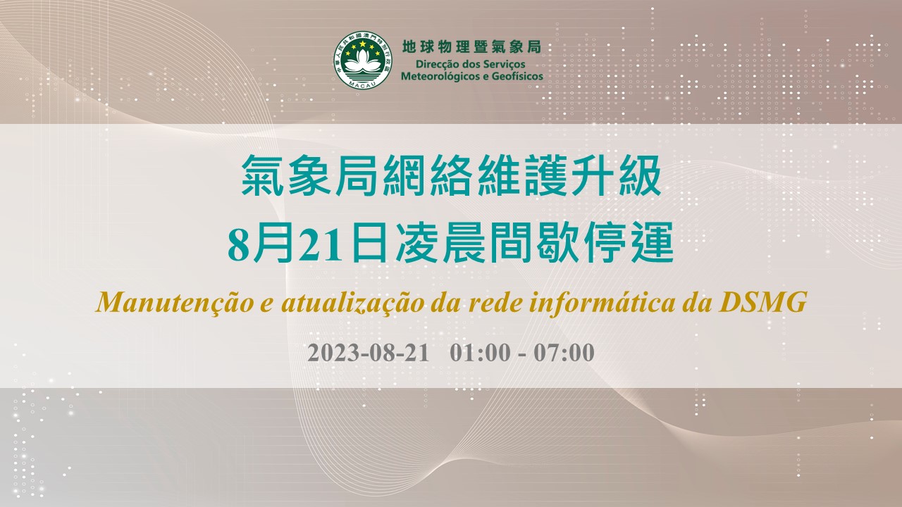 O sistema da rede informática da DSMG será actualizado no dia 21 de Agosto (Domingo), entre as 01:00 e as 07:00 horas, pelo que a rede pode funcionar intermitentemente e a prestação de informações pode ser afectada. Apresentamos desde já o nosso pedido de desculpa por qualquer inconveniente causado.