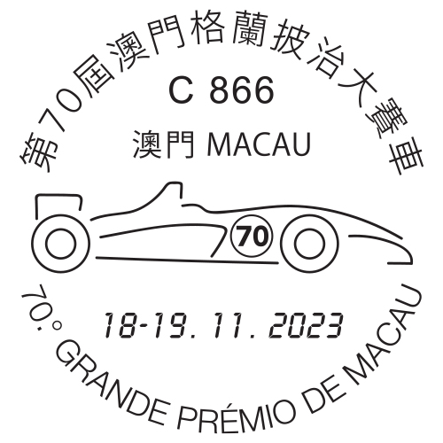 Para assinalar o 70.º Grande Prémio de Macau, a Direcção dos Serviços de Correios e Telecomunicações informa que, nos dias 11 e 12 e 18 e 19 de Novembro de 2023, haverá um Posto de Correio Temporário, com o carimbo comemorativo “70.º Grande Prémio de Macau”. O referido Posto funcionará junto à Bancada do Hotel Lisboa (na área de controlo de bilhetes de acesso) e na Loja de Filatelia da Estação Central, nos seguintes horários: