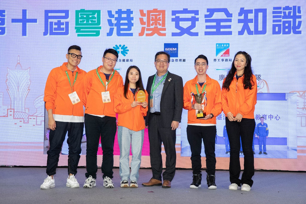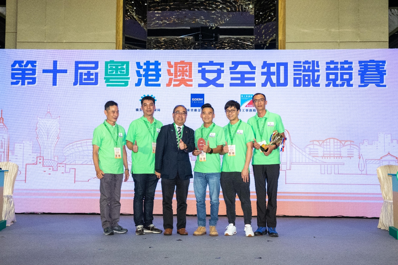 A 10ª Competição de Conhecimentos de Segurança entre Cantão, Hong Kong e Macau, organizada no mesmo dia (19 de Outubro) pelo OSHC de Hong Kong, em colaboração com o Departamento de Gestão de Emergência da Província de Guangdong e a DSAL de Macau, consistiu em dois grupos: um grupo de associações de trabalhadores e um grupo de empresas, cada uma das três regiões (Cantão, Hong Kong e Macau) enviou duas equipas representativas para participar na competição. Após uma competição acirrada nas rondas de perguntas de resposta obrigatória, perguntas de resposta sobre filmes, perguntas de resposta rápida e perguntas sobre “conhecimentos de equipamentos”, a Associação da Segurança na Construção de Macau e o Group Galaxy Entertainment, enviados a Hong Kong em representação de Macau, ganharam o 3.º lugar no grupo de associações de trabalhadores e 2.º lugar no grupo de empresas, respectivamente; sendo que de entre os novos prémios dessa Competição, a equipa empresarial de Macau ganhou o “Prémio de Maior Afinidade” concedido com base na avaliação dos vídeos de curta-metragem criados e filmados por equipas concorrentes das três regiões, enquanto a equipa de associação de trabalhadores de Macau ganhou o “Prémio de Criatividade Mais Favorita”, concedido com base na avaliação do desempenho das equipas concorrentes das três regiões na apresentação in loco dos equipamentos de segurança e saúde ocupacional.