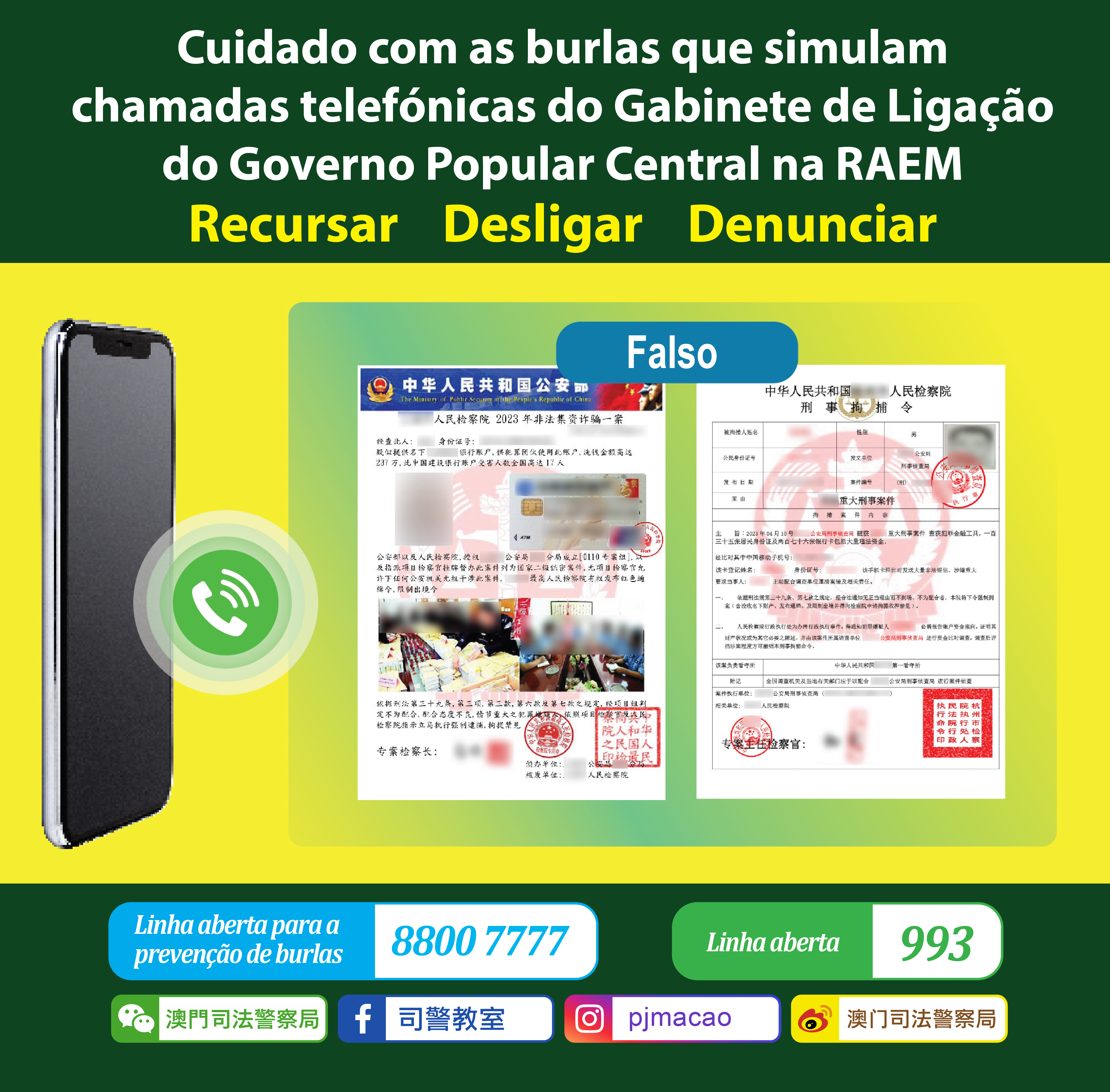 O Centro de Coordenação de Combate às Burlas da PJ continua a alargar a publicidade sobre prevenção da burla e apela novamente ao público para estar sempre atento e desconfiar das chamadas telefónicas que alegam ser de serviços públicos ou autoridades, se houver um pedido para fornecer dados de contas bancárias deve-se recusar e desligar imediatamente. Se estiver perante uma situação de burla telefónica, deve reportar ou pedir ajuda à PJ através da linha aberta para a prevenção de burlas, nº 8800 7777 ou da linha aberta 993.