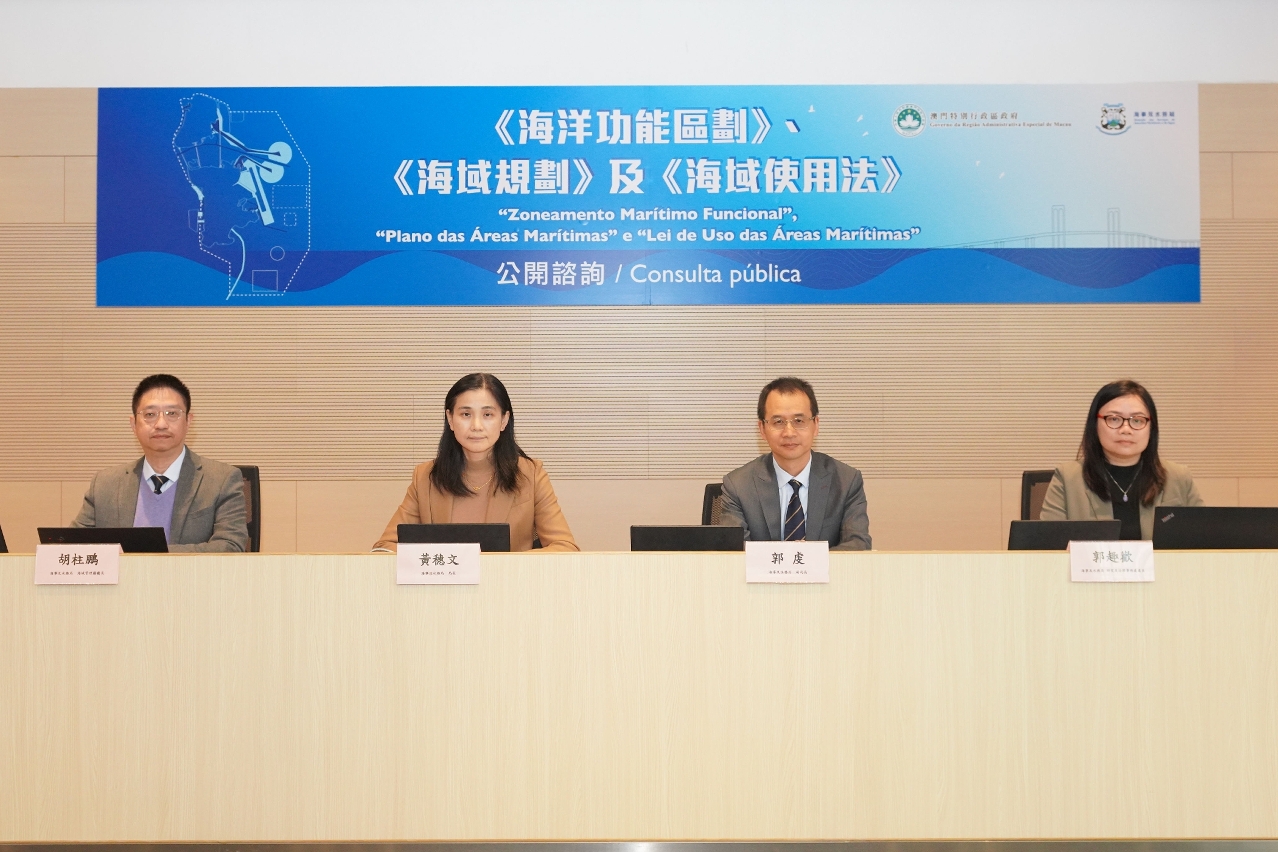 A Direcção dos Serviços de Assuntos Marítimos e de Água (DSAMA) realizou hoje (dia 28) uma conferência de imprensa para anunciar o início da consulta pública sobre o “Zoneamento Marítimo Funcional”, o “Plano das Áreas Marítimas” e a “Lei de Uso das Áreas Marítimas” em 29 de Dezembro de 2023, com a duração de 50 dias, no sentido de permitir aos sectores sociais conhecer as políticas e a concepção legislativa do Governo da RAEM no âmbito da gestão das áreas marítimas e auscultar as opiniões do público.