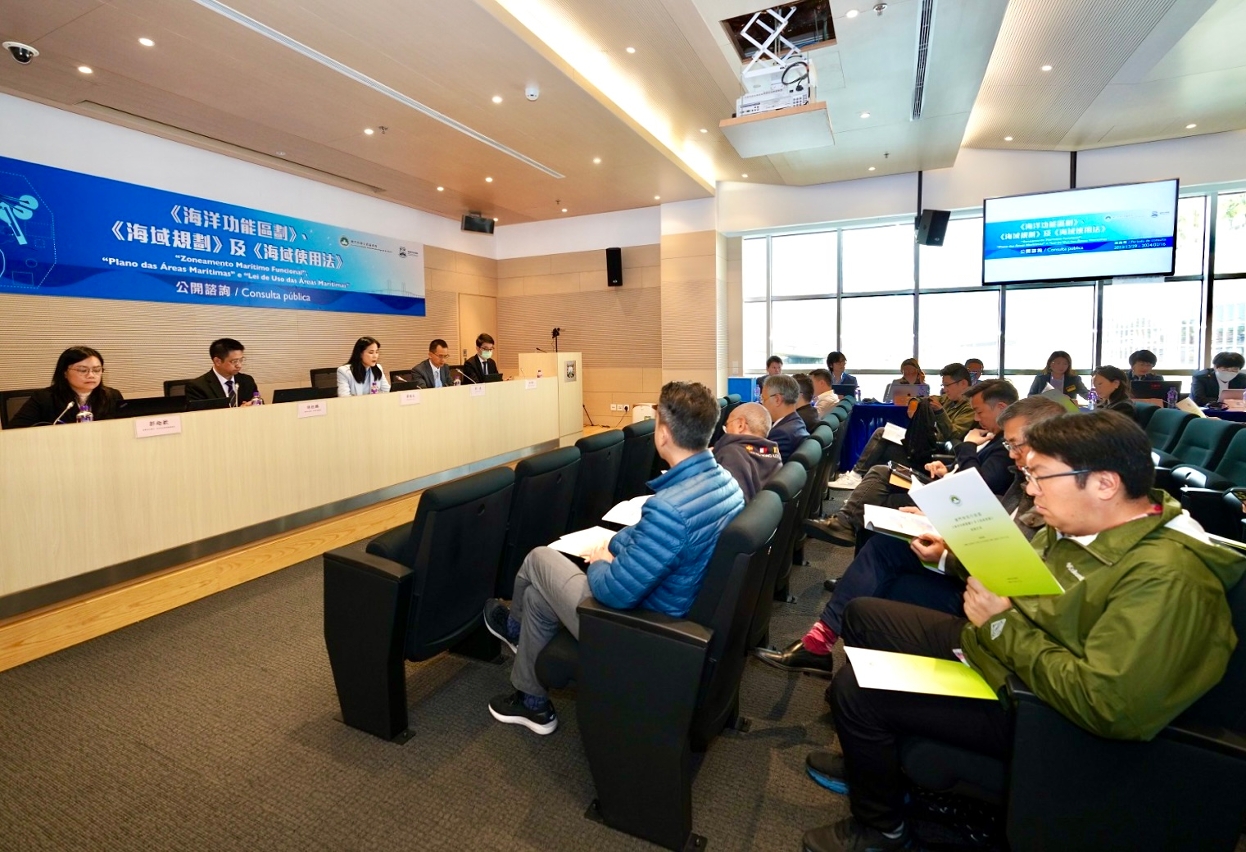 O Governo da RAEM está a realizar uma consulta pública sobre o “Zoneamento Marítimo Funcional”, o “Plano das Áreas Marítimas” e a “Lei de Uso das Áreas Marítimas”, no período de 50 dias, de 29 de Dezembro de 2023 a 16 de Fevereiro de 2024. Hoje (dia 5 de Janeiro), ocorreu a primeira sessão especial de consulta, destinada a todas as associações, conselhos consultivos do Governo e sectores relevantes, com a participação de cerca de 40 representantes de 20 instituições e associações. Os participantes apresentaram suas opiniões e sugestões sobre os três respectivos documentos de consulta pública.