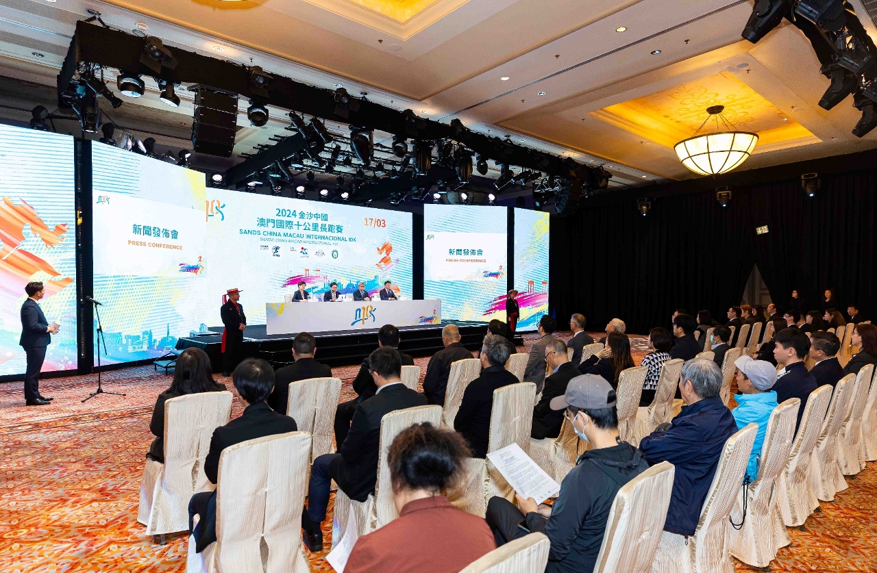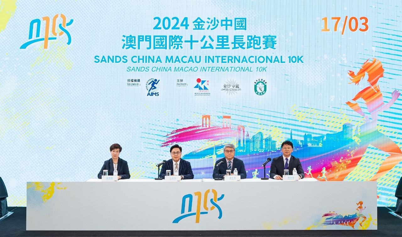 Organizada pelo Instituto do Desporto, pela Sands China Limitada e pela Associação Geral de Atletismo de Macau (AGAM), a “2024 Sands China Macau Internacional 10K” terá lugar no dia 17 de Março (domingo), tendo a Comissão Organizadora realizado hoje (dia 18) uma conferência de imprensa para divulgar informações detalhadas sobre o evento e sobre as inscrições. A conferência de imprensa contou com a presença do presidente do Instituto do Desporto, Pun Weng Kun, do presidente e director executivo da Sands China Limitada, Wilfred Wong, do vice-presidente da AGAM, Chan Pou Sin, da vice-presidente do Instituto do Desporto, Lam Lin Kio, e dos membros do Conselho do Desporto e outros convidados.