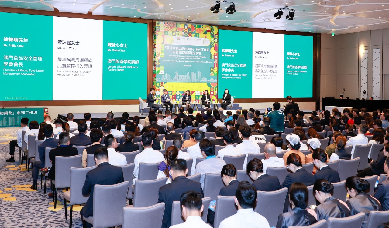 A Direcção dos Serviços de Turismo (DST), o Instituto para os Assuntos Municipais (IAM) e o Galaxy Entertainment Group (GEG) co-organizam a Série de Workshops “O segredo por trás dos pratos deliciosos”, para aumentar os conhecimentos técnicos dos profissionais sobre segurança alimentar e gestão de restauração, entre outros, e promover um desenvolvimento sustentável e de alta qualidade do sector, aprofundando o desenvolvimento de Macau como uma Cidade Criativa de Gastronomia.