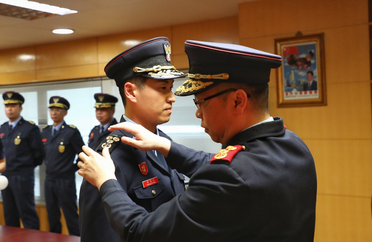 Os oficiais promovidos aos chefes principais são os chefes-ajudantes Cheong Chi Wang e Lei Long Kit.