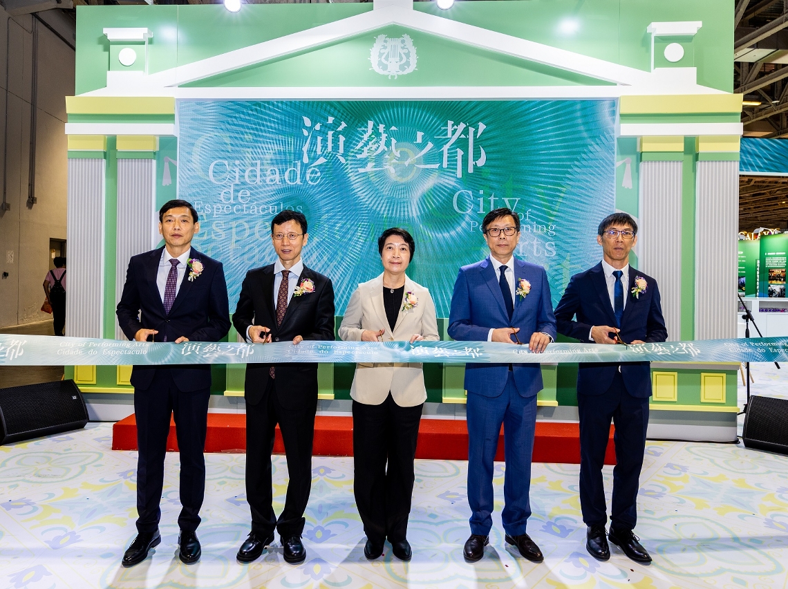 A cerimónia de inauguração do Pavilhão de Macau “Cidade de Espectáculos” teve lugar hoje (dia 26 de Abril) e foi presidida pela Presidente do Instituto Cultural, Leong Wai Man; pelo Subdirector do Departamento de Propaganda e Cultura do Gabinete de Ligação do Governo Popular Central na RAEM, Yin Rutao; pelo Presidente do Conselho de Administração do Fundo de Desenvolvimento da Cultura, Cheong Kin Hong; pelo Subdirector da Direcção dos Serviços de Turismo, Hoi Io Meng; e pelo membro do Conselho Consultivo para o Desenvolvimento Cultural, Chan Hou Seng. A cerimónia contou também com a presença da Assessora do Gabinete do Secretário para os Assuntos Sociais e Cultura, Lo Hou Chi; do Vice-Presidente do Instituto Cultural, Cheang Kai Meng; dos membros do Conselho Consultivo para o Desenvolvimento Cultural, Ieng Weng Fat, Lam Chong, Choi Ian Sin; da membro do Conselho do Património Cultural, Maria José do Carmo de Freitas; do Chefe do Departamento de Promoção das Indústrias Culturais e Criativas do Instituto Cultural, Ho Hong Pan e da Chefe do Departamento das Artes do Espectáculo, Kuok Mio U.