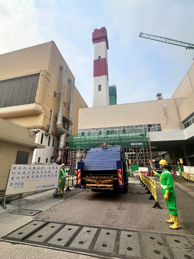 Ademais, foi reproduzida a situação de acumulação de grande quantidade de lixo na cidade, após a passagem do tufão, que precisava de ser removido com a maior brevidade possível. Para o efeito, a DSPA coordenou com a CIRS a activação de todos os incineradores, a colocação de placas de aviso na entrada principal, para sinalização da triagem de resíduos, o destacamento de mais trabalhadores para a coordenação do acesso de veículos à Central, a priorização do tratamento do lixo doméstico e dos resíduos sólidos perecíveis, o transporte das madeiras e dos metais volumosos, entre outros resíduos sólidos, para o Aterro para Resíduos de Materiais de Construção (ARMC), e, ao mesmo tempo, o envio de mais mão-de-obra para a plataforma de despejo de lixo, no sentido de acelerar o processo de descarga dos veículos, e o estabelecimento de entradas exclusivas para os camiões basculantes e veículos da empresa concessionária de serviços de limpeza, para acelerar o ritmo de despejo do lixo. Foram também postas em prática, no ARMC, medidas provisórias de contingência para a abertura ao público, durante 24 horas, para ser possível receber e tratar, em tempo útil, os resíduos, em articulação com os trabalhos comunitários de remoção de lixo.