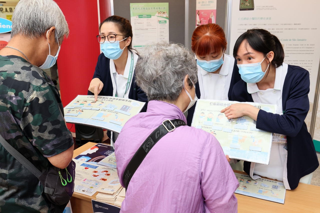 Os Serviços de Saúde têm promovido activamente, no hospital e na comunidade, a higiene das mãos para prevenir infecções. Em articulação com o tema do “Dia Mundial da Higiene Das Mãos” deste ano, o Centro Hospitalar Conde de São Januário (CHCSJ) realizou ontem (dia 2) uma actividade promocional no átrio do hospital, instalou tendas promocionais, transmitiu de forma contínua vídeos educativos sobre a higiene das mãos e realizou a cerimónia de entrega de prémios de higiene das mãos a serviços clínicos do hospital, encorajando os profissionais de saúde e a população a darem importância à higiene das mãos. Durante as actividades promocionais, os residentes participaram activamente nos jogos de perguntas e respostas e demonstrações de mãos limpas com o pessoal médico e de enfermagem num ambiente descontraído para aumentar a sensibilização para a higiene das mãos.