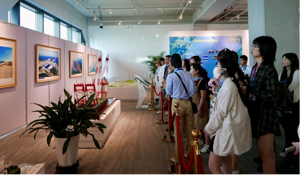 Os estudantes, acompanhados por guia profissional, apreciaram de perto as três pontes, nomeadamente a Ponte Jiuzhou em forma de “vela”, a Ponte Jianghai em forma de “golfinho” e a Ponte Qingzhou em forma de “nó chinês”, bem como a “Ilha de Golfinho Branco” (Ilha Artificial de Oeste) e o túnel subaquático, podendo assim observar plenamente a paisagem magnífica da Ponte Hong Kong-Zhuhai-Macau. Na “Ilha de Golfinho Azul” (Ilha Artifical de Este), os estudantes visitaram salas de exposição, conhecendo as técnicas arquitectónicas da Ponte, os equipamentos de construção, o espírito de exploração e as histórias comoventes por detrás da Ponte, bem como as diversas “maiores conquistas do mundo”.