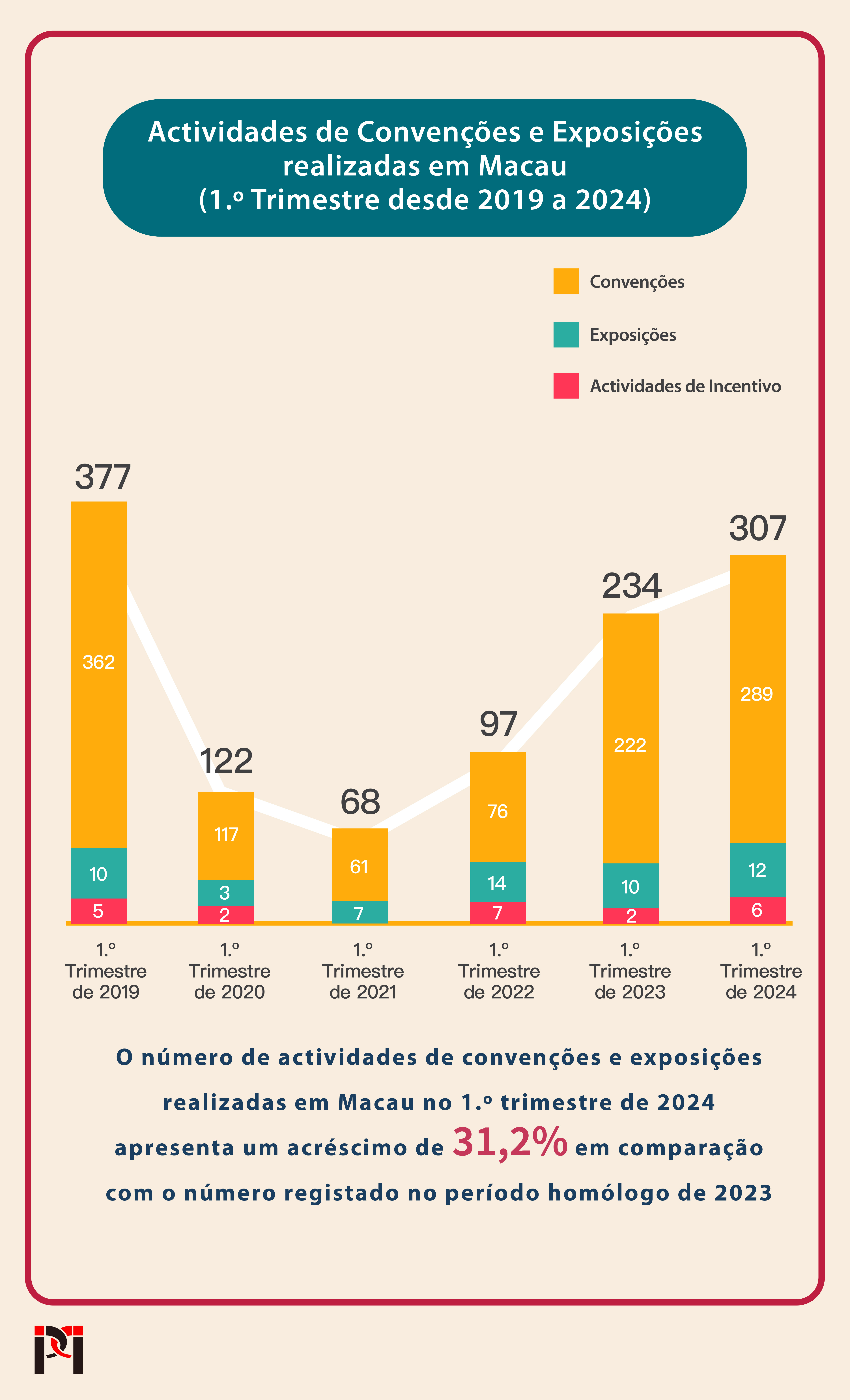 O IPIM continua a fortalecer a sua articulação com outras principais indústrias por meio das convenções e exposições e dos serviços de promoção de negócios e investimentos, de modo a dar respostas precisas às necessidades de desenvolvimento das indústrias “1+4”. De acordo com os dados da Direcção dos Serviço de Estatística e Censos, no primeiro trimestre de 2024, foram realizadas, em Macau, 307 actividades de convenções e exposições, um aumento de 31,2% em comparação com o período homólogo do ano passado (234 actividades), dentro dessas actividades, o número de exposições superou o número do mesmo período em 2019.