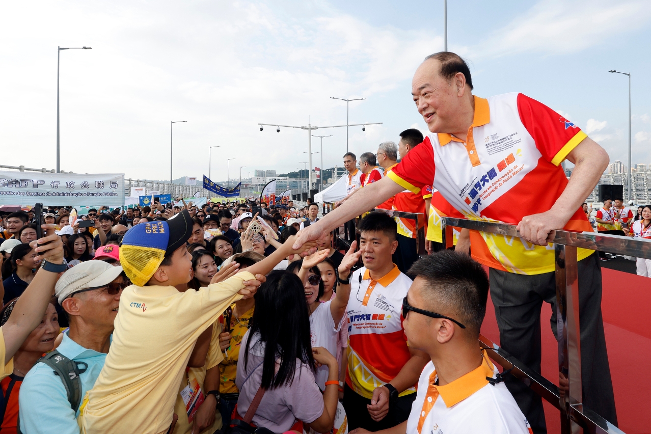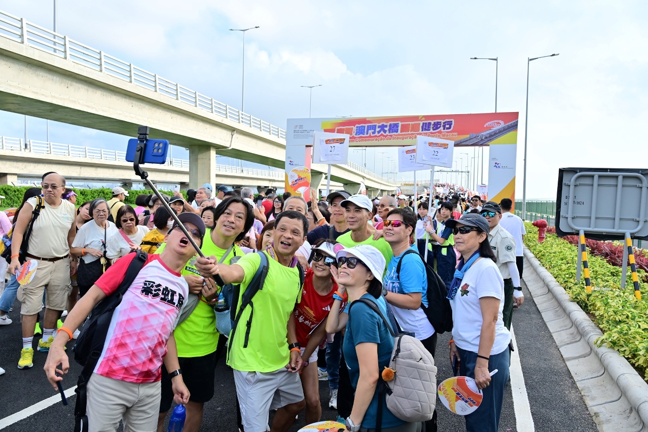 Em comemoração do 75.º Aniversário da Implantação da República Popular da China e do 25.º Aniversário do Estabelecimento da Região Administrativa Especial de Macau, o Instituto do Desporto realizou hoje (dia 29), às 08H00 da manhã, a “Marcha em Comemoração da Inauguração da Ponte Macau” antes da sua inauguração. O evento atraiu a participação de cerca de 21.000 residentes e o percurso começa no viaduto de acesso da Ponte Macau do lado de Pak On Taipa, segue para o viaduto de acesso da Ponte Macau perto da zona A e daí volta para o local de partida (lado de Pak On), com uma distância total de cerca de 6km.