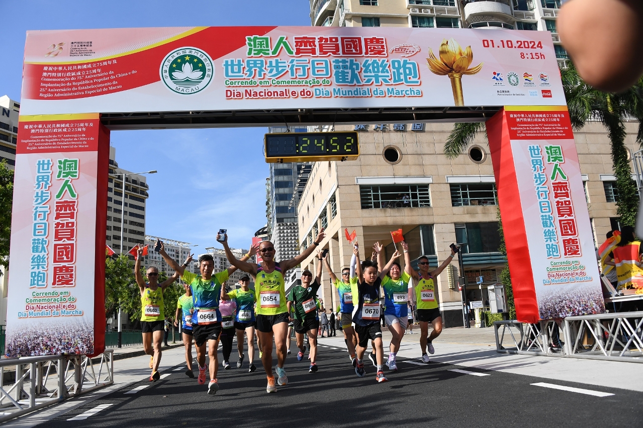 Em comemoração do “75.º Aniversário da Fundação da República Popular da China e do 25.º Aniversário do Estabelecimento da RAEM, a actividade de corrida intitulada “Correndo em Comemoração do Dia Nacional e do Dia Mundial da Marcha 2024”, organizada pelo Instituto do Desporto, teve lugar hoje (dia 1) às 08H15 na Praça de Lótus Dourado. A corrida começou logo depois da cerimónia da partida presidida pelo Chefe do Executivo da Região Administrativa Especial de Macau, Ho Iat Seng.