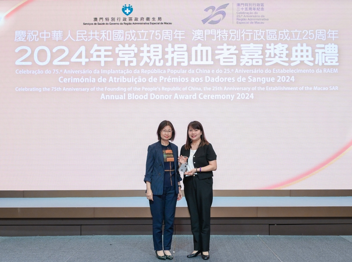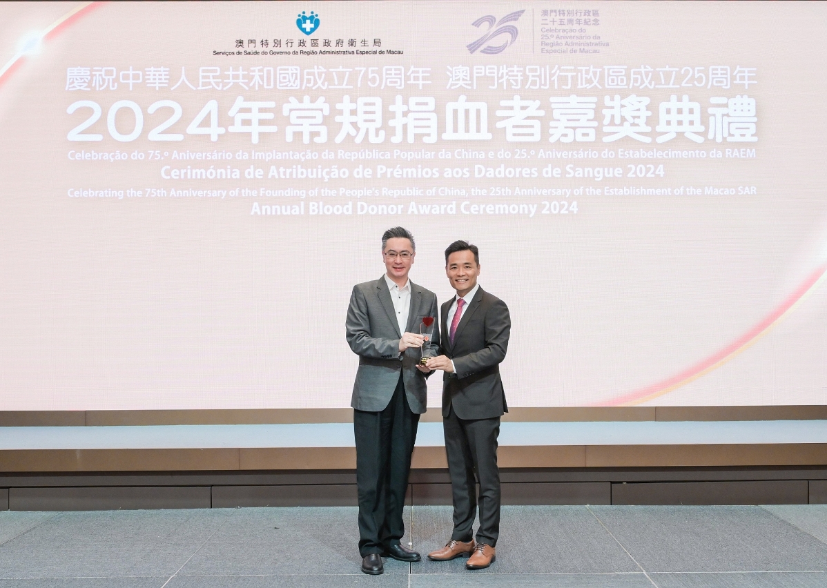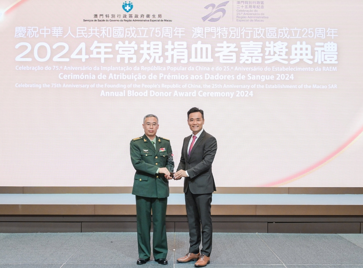 Realizou-se com sucesso a Cerimónia de Atribuição de Prémios aos Dadores Regulares de Sangue de 2024, por ocasião das Comemorações do 75.º Aniversário do Estabelecimento da República Popular da China e do 25.º Aniversário do Estabelecimento da Região Administrativa Especial de Macau.