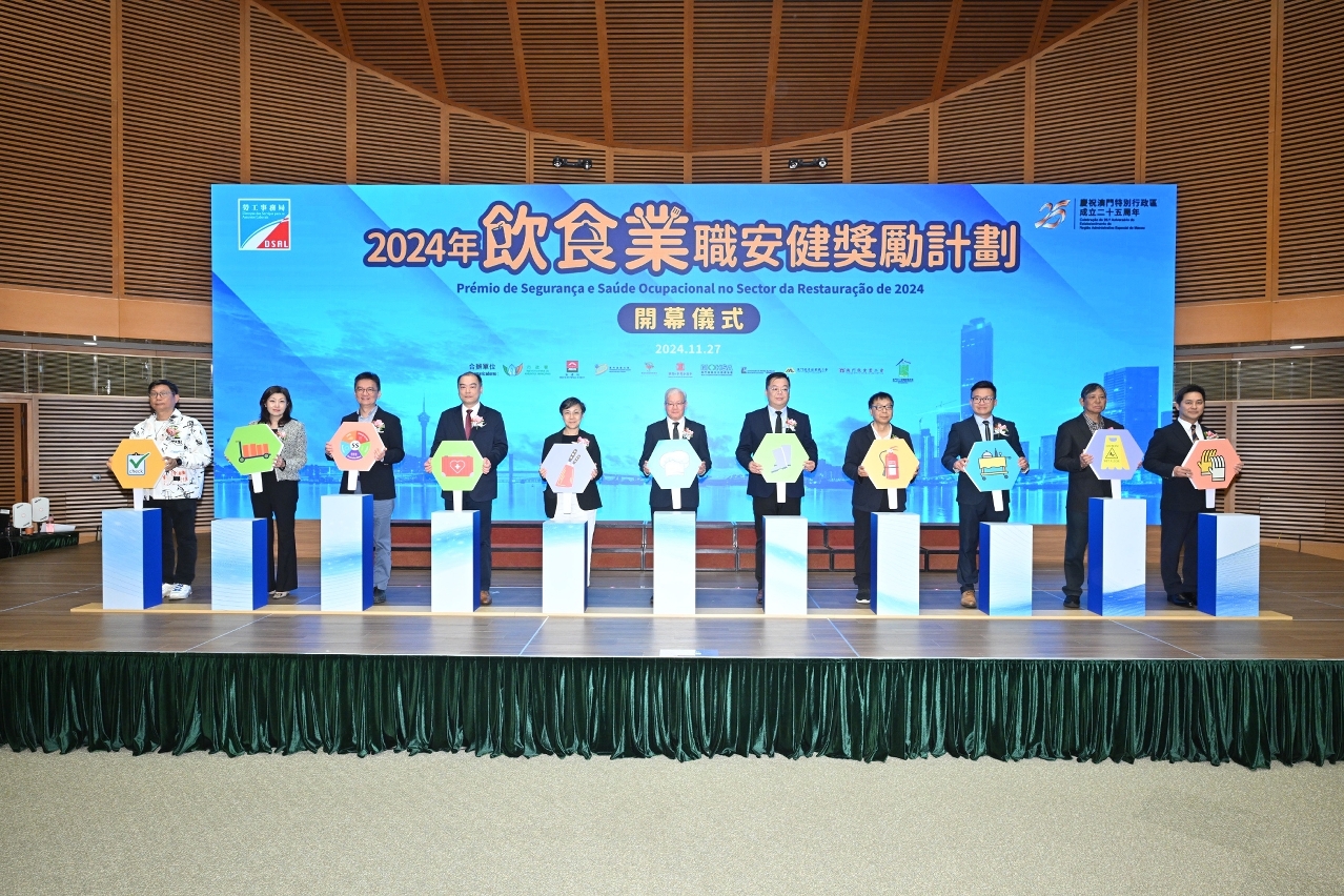 O fórum e cerimónia de atribuição de prémios relativos ao “Prémio de segurança e saúde ocupacional no sector da restauração 2024”, organizada pela DSAL, teve lugar na tarde do dia 27 de Novembro na sala de conferências do Centro de Ciência de Macau. Nesta edição, o número de restaurantes e de participantes bateram o recorde, com um total de 71 restaurantes e 145 profissionais de gestão de segurança e trabalhadores, tendo sido bem aceite pelo público.