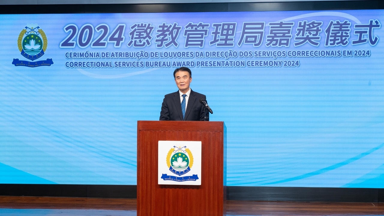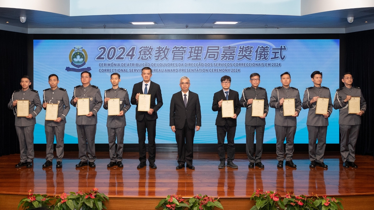 Na tarde do dia 2 de Dezembro, a Direcção dos Serviços Correccionais (DSC) realizou a Cerimónia de Atribuição de Louvores 2024 no auditório da Escola Superior das Forças de Segurança de Macau, no intuito de elogiar os trabalhadores a título individual e colectivo com desempenho notável neste ano, atribuir os troféus por aposentação honrosa e medalhas por longo tempo de serviço, como forma de mostrar pleno reconhecimento dos seus contributos, estimular o moral e aumentar a coesão do corpo correccional, bem como efectuar o balanço do trabalho do ano. A cerimónia foi presidida pelo Secretário para a Segurança, Wong Sio Chak.