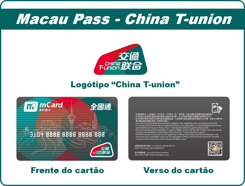 A Macau Pass, S.A. começará a emitir, a partir de hoje (4 de Dezembro), o cartão com o logótipo “China T-union”. Este cartão tem como objectivo apoiar não apenas a utilização dos transportes públicos locais e os benefícios de tarifas, mas também facilitar o acesso aos principais meios de transportes nas principais cidades do país. Para mais informações sobre a compra do cartão Macau Pass - China T-union e a sua utilização, pode consultar a página electrónica da Macau Pass: https://www.macaupass.com , ou ligar para a linha aberta da Macau Pass (853) 2872 7688.