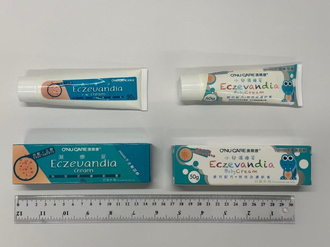 De acordo com informações publicadas pelo Departamento de Saúde da Região Administrativa Especial de Hong Kong, foram detectados que dois produtos para uso externo denominados “Eczevandia Cream” e “Eczevandia Baby Cream” possuem na sua composição uma substância medicamentosa ocidental conhecida como “furoato de mometasona” (mometasone furoate) e que o “Eczevandia Cream” também contém a substância medicamentosa ocidental “miconazol” (miconazole).