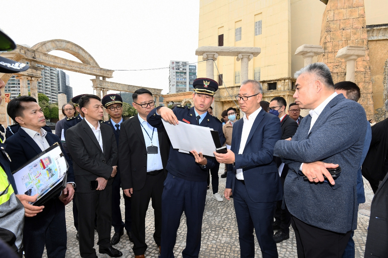 Os dirigentes e chefias percorreram as zonas do Templo de A-Má, o percurso do desfile de carros alegóricos e a Feira de Ano Novo Lunar da Praça do Tap Seac, a fim de se inteirar da situação no terreno, do plano de controlo de multidão, das medidas de gestão do tráfego rodoviário, da mobilização do dispositivo policial, do plano de evacuação de emergência, entre outros trabalhos. Pretende-se através destas vistorias instruir os serviços e entidades competentes para estarem preparados e definirem bem os planos e estratégias com vista a elevar a capacidade de reposta a emergências face a possíveis incidentes súbitos, garantido a realização das actividades comemorativas de forma ordeira e segura.