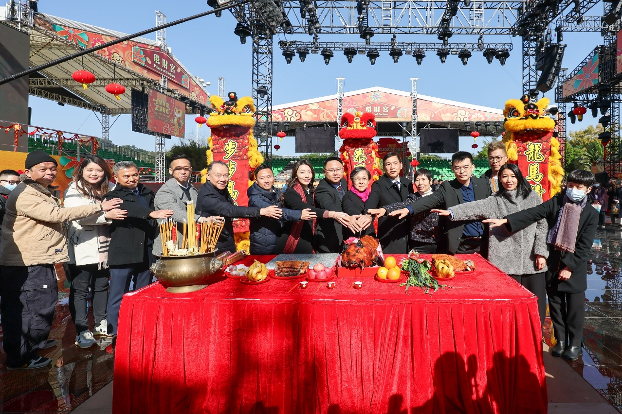 Cerimónia de bênção da Parada de Celebração do Ano Novo Lunar para desejar que o evento decorra com sucesso