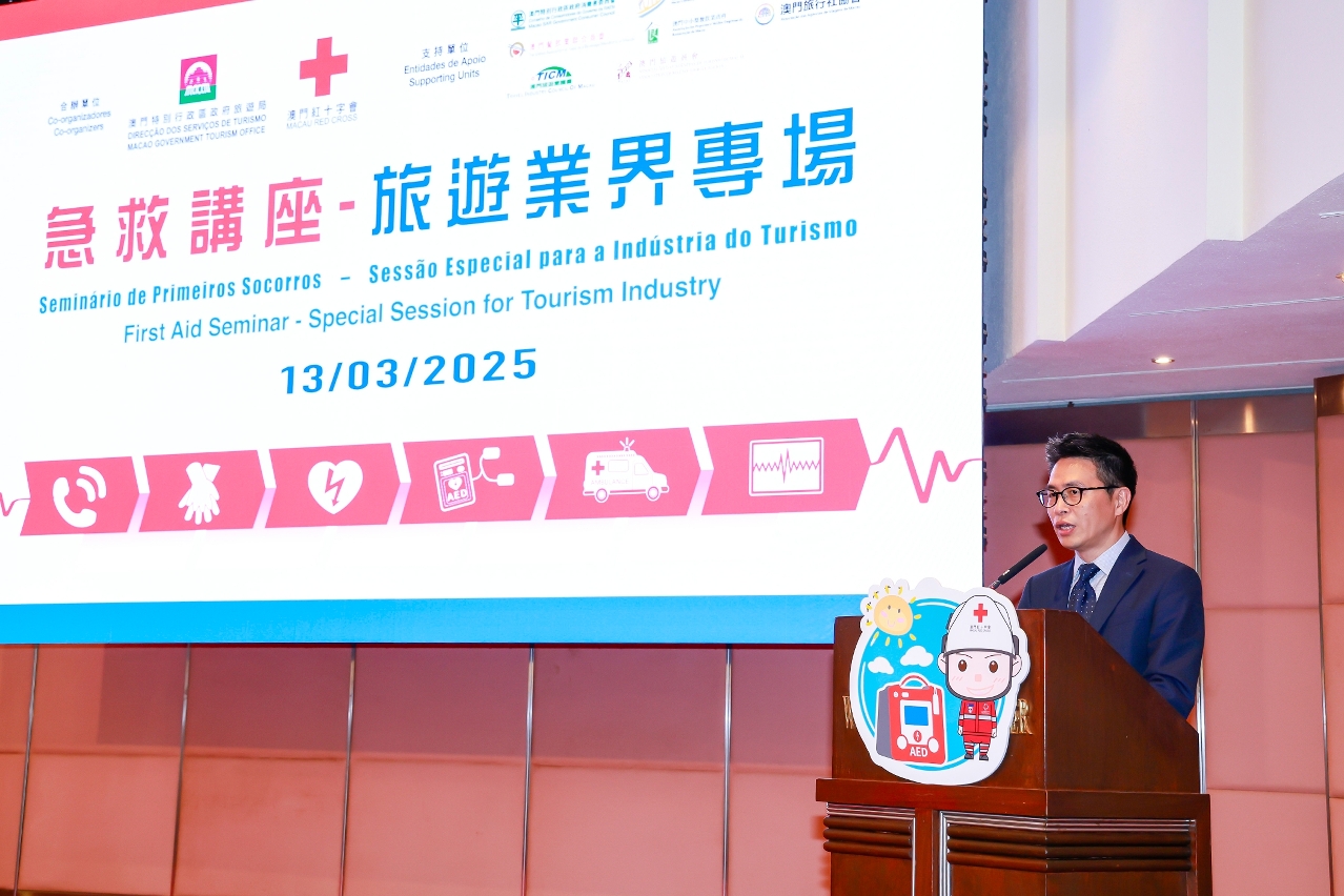 A Direcção dos Serviços de Turismo (DST) convidou a Cruz Vermelha de Macau para co-organizar hoje (dia 13) um seminário sobre primeiros socorros, para reforço das técnicas e da consciência dos profissionais de turismo sobre esta área, contribuindo para a criação de um ambiente turístico seguro e tranquilo, para proteger ainda mais a imagem de Macau como cidade turística e aprofundar a construção de Macau como um centro mundial de turismo e lazer.