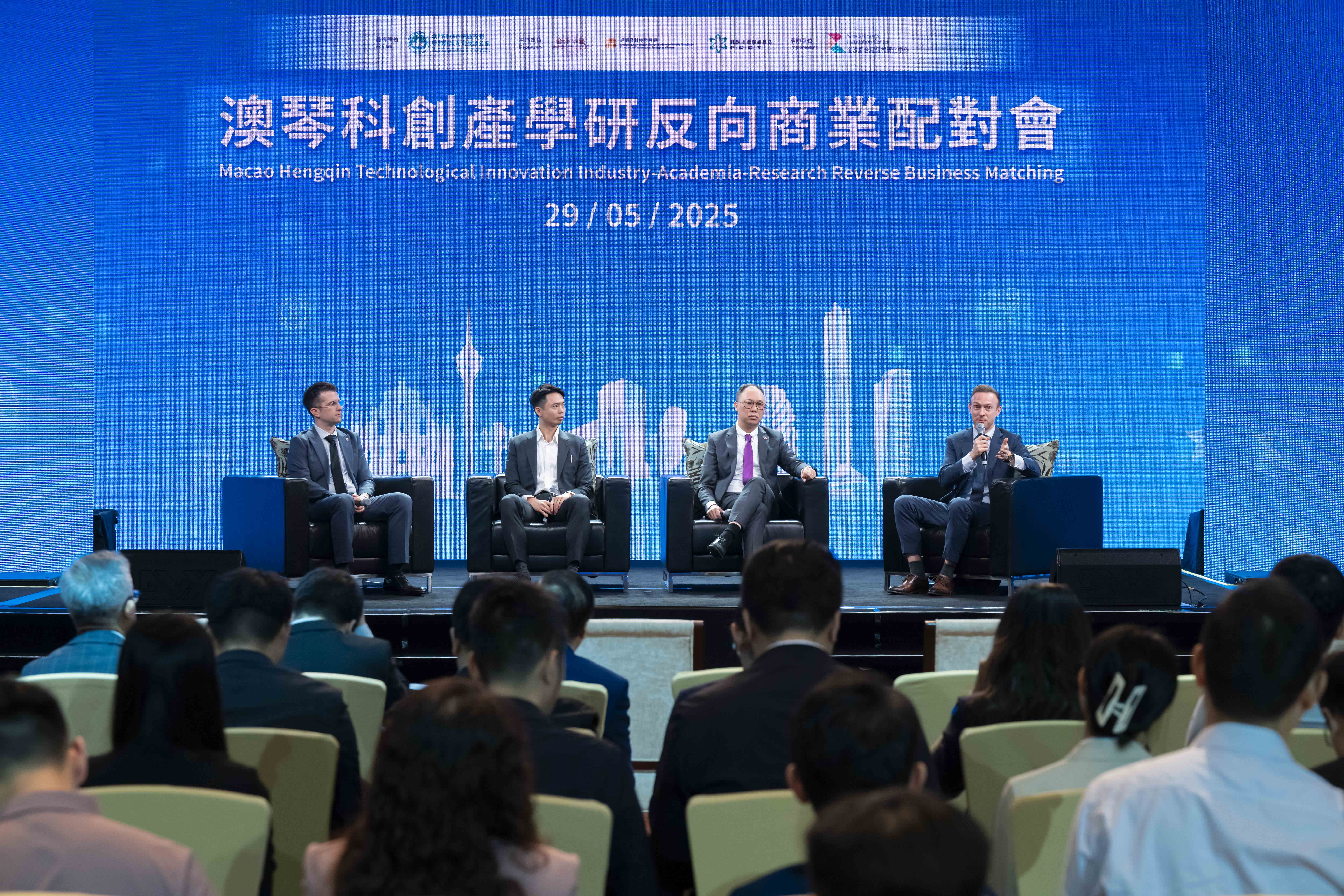 O "Encontro Inverso de Correspondência Comercial no âmbito da Indústria, Academia e Investigação Científica da Inovação e Tecnologia entre Macau e Hengqin" é realizado pela primeira vez, sob a orientação do Gabinete do Secretário para a Economia e Finanças e executado pelo Centro de Incubação Sands Resorts Macao, estabelecido pela Sands China. O evento visa, através de actividades de correspondência entre indústria, academia e investigação, apoiar as empresas de Macau e Hengqin na sua aposta em I&D, na transformação dos resultados de investigação científica das instituições de ensino superior e na colaboração entre indústria, academia e investigação, promovendo ainda mais o desenvolvimento integrado e aprofundado da indústria em Macau e Hengqin, em consonância com a estratégia de desenvolvimento económico moderadamente diversificado "1+4" do Governo da RAEM.
