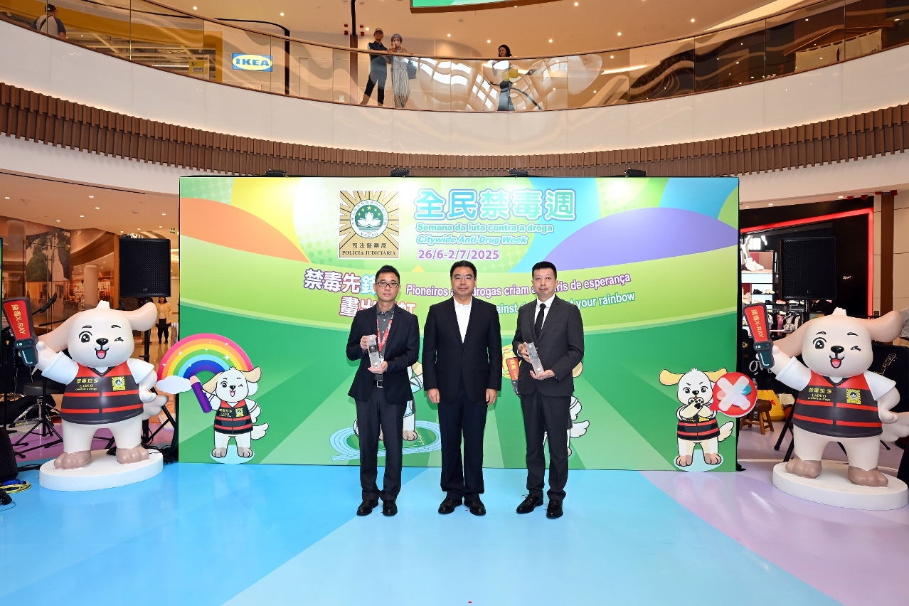 A campanha “Semana da luta contra a droga” realiza-se no NOVA Mall da Taipa no período de 26 de Junho a 2 de Julho, e a sua cerimónia de abertura teve lugar ao meio dia do primeiro dia da iniciativa. Foram convidados para presidir a cerimónia o 1.º subchefe de Gabinete da Comissão de Combate à Droga da província de Guangdong, chefe de Brigada Geral de Luta Contra a Droga da Directoria Provincial de Segurança Pública de Guangdong, LIU Weiguo, o presidente permanente da Associação de Administração de Propriedades de Macau também convocador-geral do Grupo “Amigos da Prevenção Criminal na Área da Habitação” da PJ, LAO Ngai Leong, a presidente da União Geral das Associações dos Moradores de Macau, NG Siu Lai, a presidente da direcção da Associação Geral das Mulheres de Macau, UN Sio Leng, o vice-presidente da Federação das Associações dos Operários de Macau, LEONG Pou U, o presidente da direcção da Associação Geral dos Chineses Ultramarinos de Macau, BI Chi Kin, o presidente da direcção da Aliança de Povo de Instituição de Macau, LEI Leong Wong, a presidente da direcção da Associação de Administração de Propriedades, SIT Un Na, o vice-presidente da Associação dos Técnicos Profissionais da Administração de Imóveis, CHUI Sio Man, o presidente da Associação de Profissionais do Sector da Administração de Propriedades de Macau, CHAO Ka Chon, a vice-presidente da direcção da Associação de Educação de Macau, IEONG Pui Ian, a directora de escola e vogal da direcção da Associação das Escolas Católicas de Macau, NG Sai Wa, o General Manager do NOVA Mall, Paul LEE e o director da PJ, SIT Chong Meng. Estiveram também presentes no evento os subdirectores da PJ, LAI Man Vai, SOU Sio Keong, SAM Kam Weng e as várias chefias da PJ.