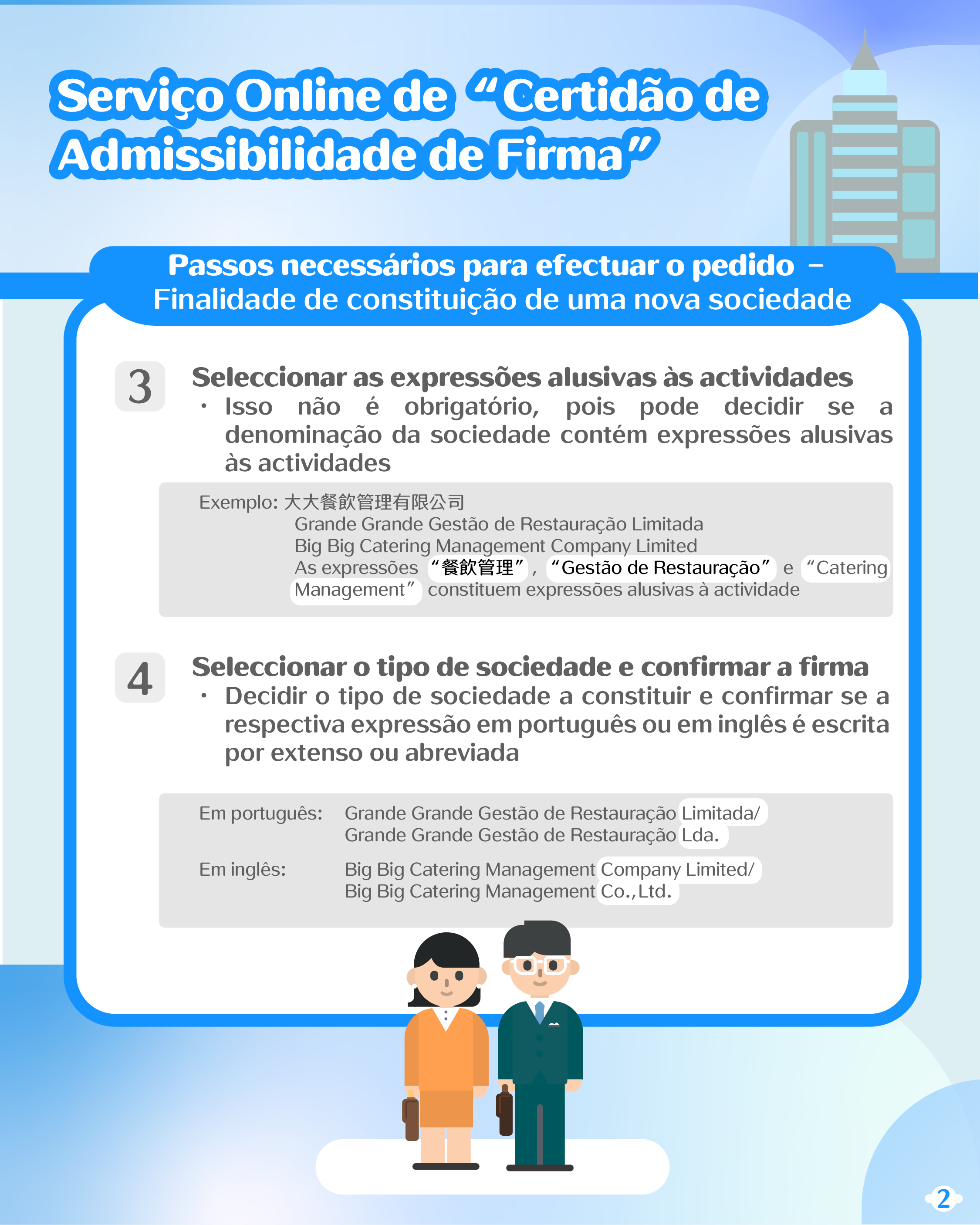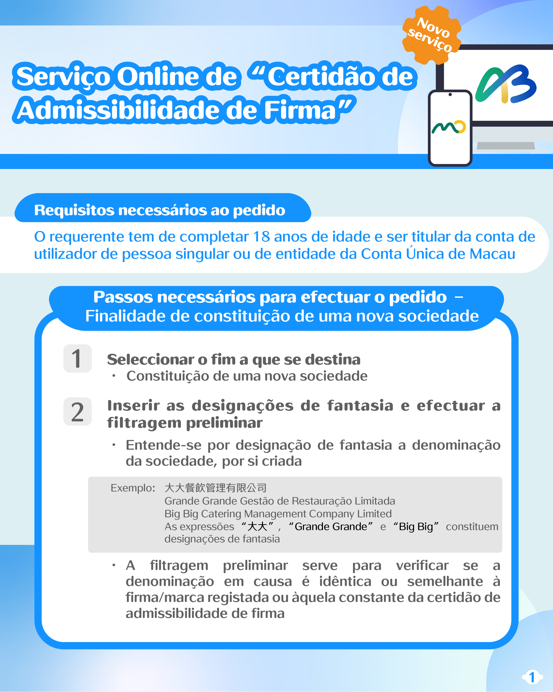 No que diz respeito à certidão de admissibilidade de firma, os cidadãos podem pedi-la através da Conta Única de Macau ou da Plataforma para Empresas e Associações, recebendo online a versão electrónica ou levantando presencialmente a versão em papel. Assim sendo, antes da constituição de sociedade ou da alteração da firma ou objecto da sociedade, os cidadãos não necessitam de se dirigir à conservatória para solicitar e levantar a certidão de admissibilidade de firma, tendo o objectivo de confirmar se a firma (denominação social) a adoptar é admissível, ao contrário do que sucedia no passado.