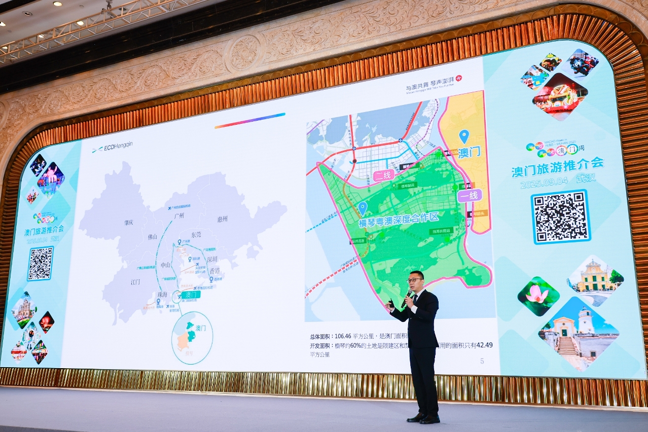 Representante da Divisão de Cultura, Turismo, Convenções e Exposições e Comércio da Direcção dos Serviços de Desenvolvimento Económico da Zona de Cooperação Aprofundada entre Guangdong e Macau em Hengqin apresenta também a situação mais recente do desenvolvimento turístico de Hengqin