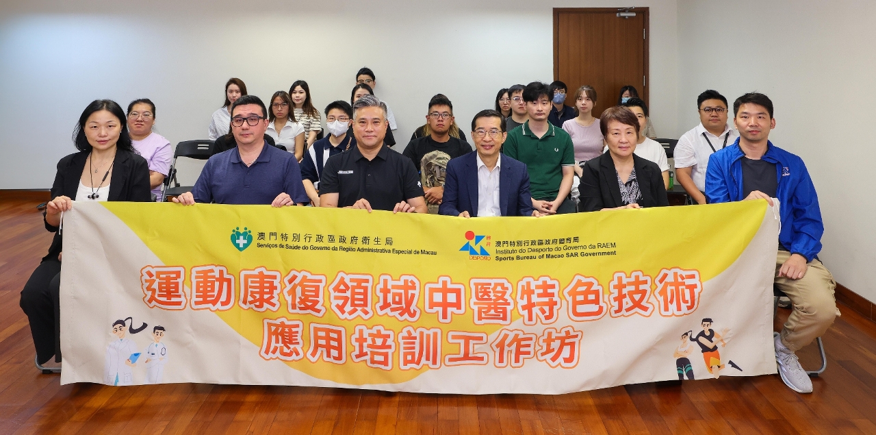 Com o intuito de promover o programa “Comunidade Saudável” e concretizar os diversos trabalhos do “Plano de Acção para Macau Saudável”, os Serviços de Saúde através da cooperação interdepartamental, integram os recursos e complementam as vantagens, no sentido de elevar o nível geral de saúde dos residentes de Macau. Os Serviços de Saúde e o Instituto do Desporto organizaram recentemente em conjunto, no Pavilhão Polidesportivo Tap Seac, o “Workshop de formação sobre a aplicação de técnicas características da medicina tradicional chinesa na área da reabilitação desportiva”, que visa reforçar a capacidade dos jovens médicos de medicina tradicional chinesa na aplicação das técnicas características da medicina tradicional chinesa na prevenção, tratamento e reabilitação de lesões desportivas, promovendo, ao mesmo tempo, o papel mais activo da medicina tradicional chinesa na área da medicina desportiva. Este workshop contou com a presença do Subdirector dos Serviços de Saúde, Cheang Seng Ip, do Vice-Presidente Substituto do Instituto do Desporto, Mok Chi Hang e de mais de 20 jovens médicos de medicina tradicional chinesa com idade igual ou inferior a 35 anos.