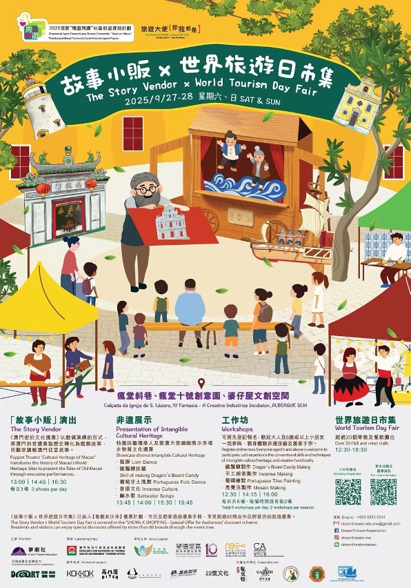 Através do seu plano de apoio financeiro, a Direcção dos Serviços de Turismo (DST) continua a incentivar as associações locais a realizarem actividades ou projectos turísticos diversificados, com vista a impulsionar a economia comunitária. A DST apoiou, em Setembro, associações na organização de cinco actividades distribuídas por Macau, Taipa e Coloane: “Mak Mak’s great adventure in Macao – Immersive Lighthouse Guest”, “Taste Macao: Gourmet Marketplace”, “Mak Mak Tourism Day Promotion Carnival”, “Redboat 1866 Wing Chun Legend” e “The Story Vendor x World Tourism Day Fair”. As actividades com características únicas permitem aos visitantes e residentes experienciar o rico e diversificado encanto do “turismo +” de Macau.