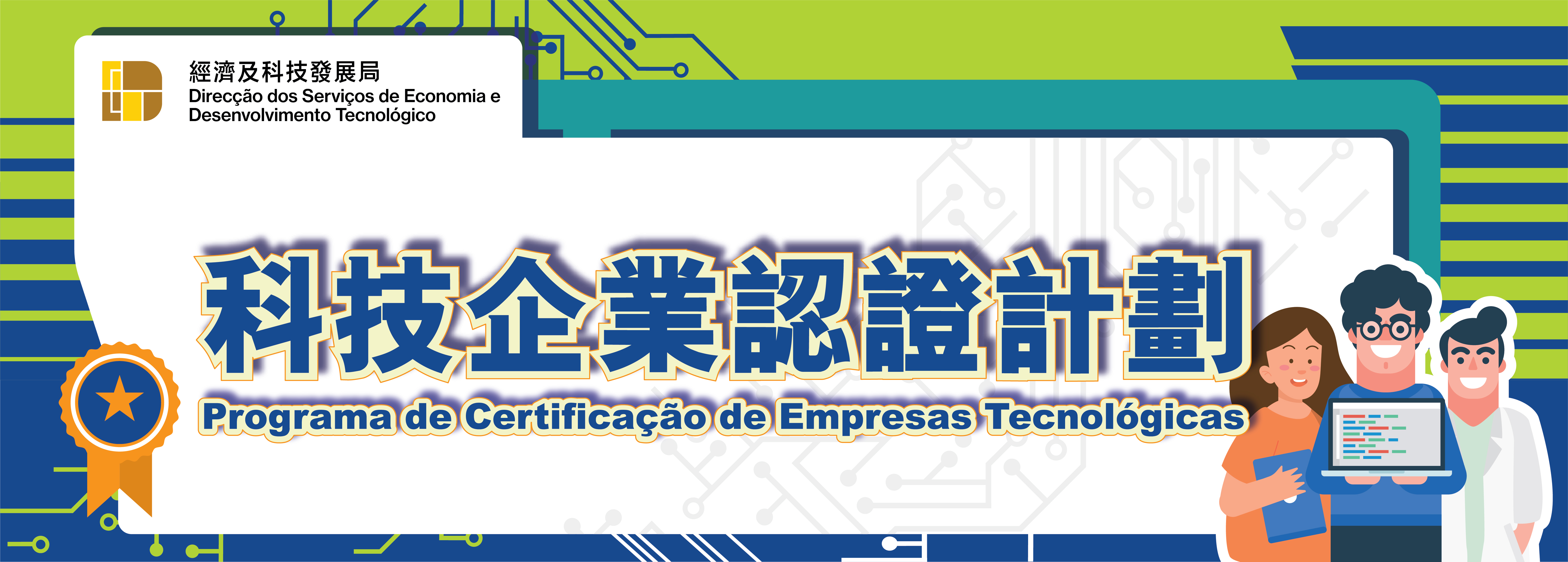 O Programa visa identificar empresas tecnológicas locais qualificadas através do sistema de avaliação, dotando-as de diferentes níveis de certificação oficial de modo a impulsioná-las a expandirem as suas actividades e, ao mesmo tempo, em articulação com as diversas medidas de apoio lançadas pelo Governo da RAEM, ajudar as mesmas a desenvolverem-se. O prazo de validade de certificação de empresas tecnológicas é de três anos. Para conhecer as listas de empresas certificadas e os detalhes da candidatura ao Programa, pode-se consultar a página exclusiva do Programa (https://www.dsedt.gov.mo/pcet/pt/index.jsp) ou ligar para a linha de consulta 85972332.