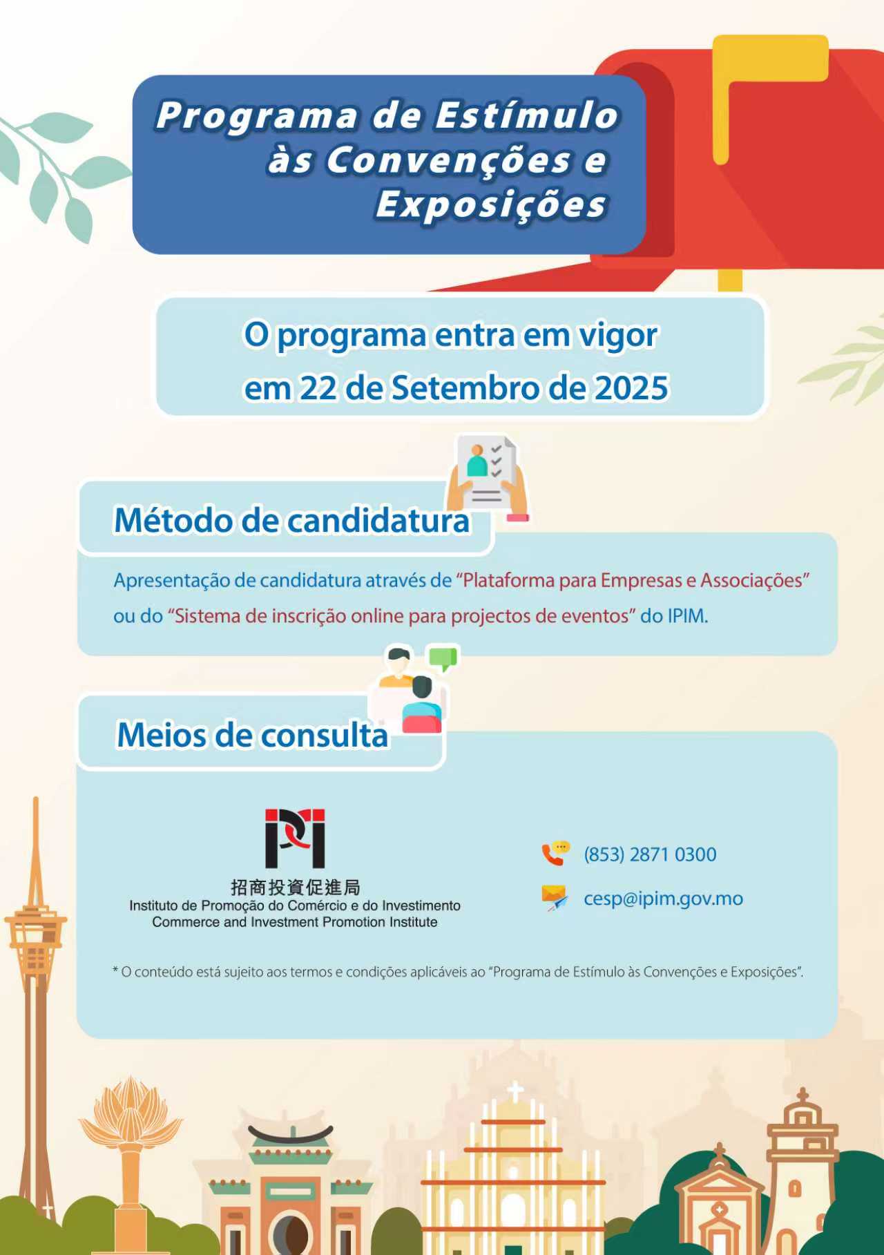 As versões revistas do “Programa de Estímulo às Convenções e Exposições” e o “Programa de Incentivo Financeiro para Participação em Feiras e Exposições” entrarão em vigor a partir de 22 de Setembro de 2025. A sessão de esclarecimento contou com a presença de mais de 80 representantes do Grupo de Trabalho de Apoio na Licitação de Convenções e Exposições e de profissionais do sector que se candidataram aos respectivos apoios financeiros.