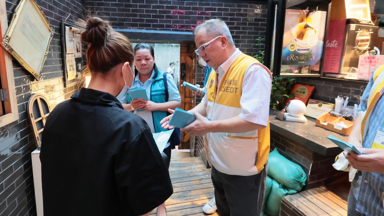 Para responder à aproximação do tufão “Ragasa”, a Direcção dos Serviços de Economia e Desenvolvimento Tecnológico (DSEDT) e o Centro de Produtividade e Transferência de Tecnologia de Macau (CPTTM) enviaram, há dias, pessoal à zona entre a Rua das Estalagens e a Rua de Cinco de Outubro e à zona antiga da Taipa, para distribuir folhetos informativos aos estabelecimentos comerciais de modo a alertá-los para a necessidade de preparar atempadamente medidas preventivas contra ventos e inundações.