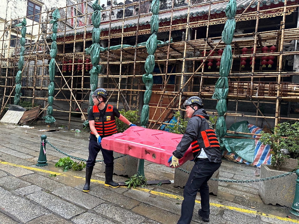 No que se refere a operações de remoção de obstáculos, o COPC coordenou rapidamente os cinco serviços de evacuação e o IAM, efectuando inspecções de segurança a todas as estradas de Macau e trabalho de remoção de obstáculos. Posteriormente, durante o sinal n.º 3 de tempestade tropical, a Associação dos Proprietários de Máquinas de Construção Civil de Macau e a Companhia de Engenharia e de Construção da China (Macau), Limitada, utilizaram diversos equipamentos mecânicos para ajudar a remover das vias públicas árvores derrubadas e obstáculos de grande dimensão, envidando todos os esforços para assegurar a fluidez da circulação nas principais vias rodoviárias de Macau, de modo a assegurar a retoma da normalidade num curto espaço de tempo, salvaguardando a deslocação dos cidadãos e turistas em segurança.