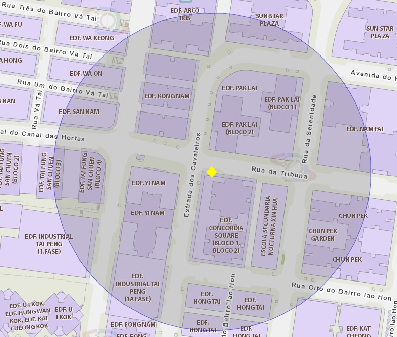 Os Serviços de Saúde foram notificados no dia 11 de Outubro de um caso importado de febre de dengue. Serão tomadas medidas de eliminação de mosquitos na área de risco junto à paragem de autocarros da Rua da Tribuna, Macau. Tendo em conta que a área de acção do mosquito Aedes Albopictus é de cerca de 100 metros em torno do ponto de proliferação, foi definida uma área de risco num raio de 100 metros como alvo da presente acção de eliminação de mosquitos (vide o mapa em anexo). Os Serviços de Saúde, apelam aos cidadãos para prestarem atenção e tomarem medidas preventivas em conjunto, a fim de reforçar a prevenção de doenças transmitidas por mosquitos.