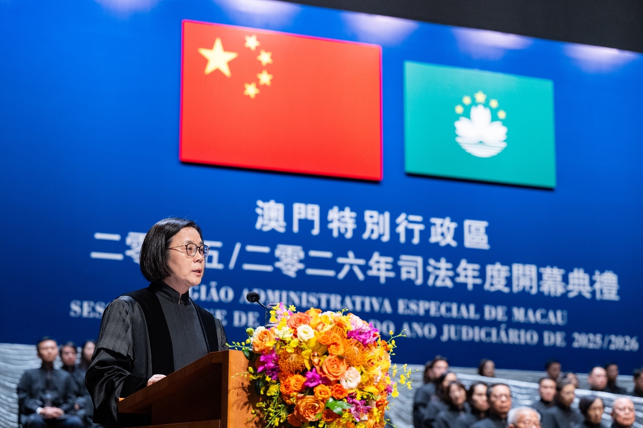 Realizou-se a Sessão Solene de Abertura do Ano Judiciário de 2025/2026 da RAEM no dia 21 de Outubro, às 15H30, no Grande Auditório do Centro Cultural de Macau. O Chefe do Executivo, Dr. Sam Hou Fai, presidiu à Sessão que contou com a presença na tribuna de honra dos Presidente da Assembleia Legislativa, Dr. Cheong Weng Chon, Presidente do Tribunal de Última Instância, Dra. Song Man Lei, Secretário para a Administração e Justiça, Dr. Wong Sio Chak, Procurador, Dr. Tong Hio Fong, Presidente da Comissão Independente para a Indigitação de Juízes, Dr. Lau Cheok Va e Presidente da Direcção da Associação dos Advogados de Macau, Dr. Vong Hin Fai.
