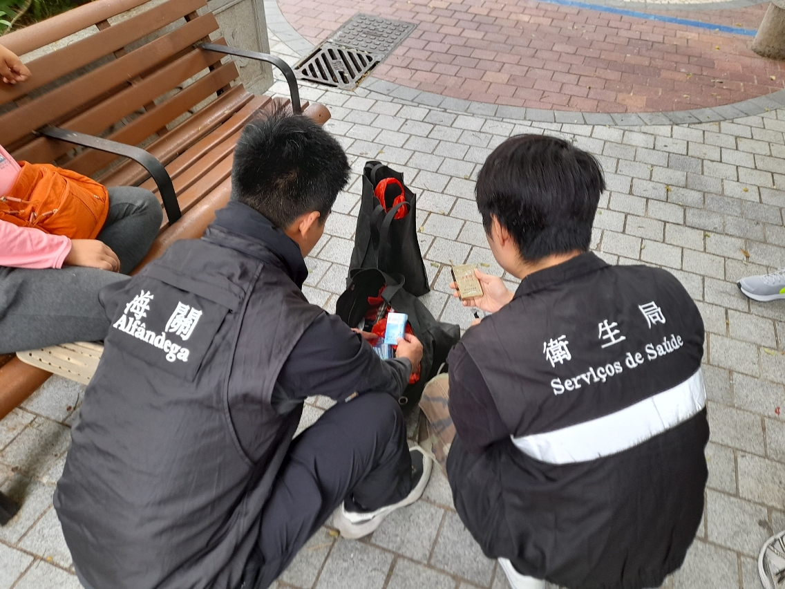 O Gabinete para a Prevenção e Controlo do Tabagismo e do Alcoolismo dos Serviços de Saúde recebeu, no dia 23 de Outubro, uma denúncia sobre a importação ilegal de cigarros, pelo que, em conjunto com o pessoal dos Serviços de Alfândega, deslocaram-se, de imediato, à zona de lazer da Praça de Luís de Camões para efectuar uma inspecção, tendo identificado uma mulher com comportamentos suspeitos. Durante a acção, o agente alfandegário encontrou, no saco que a pessoa referida transportava, cigarros suspeitos de terem sido importados ilegalmente, num total de 45 maços (900 unidades), cujas embalagens não apresentavam a rotulagem exigida pela Lei n.º 5/2011 (Regime de prevenção e controlo do tabagismo) e aprovada por regulamento administrativo. O pessoal dos Serviços de Alfândega procedeu à apreensão dos objectos envolvidos. Os Serviços de Saúde e os Serviços de Alfândega acompanharam o caso nos termos do “Regime de Prevenção e Controlo do Tabagismo” e da Lei do Comércio Externo.