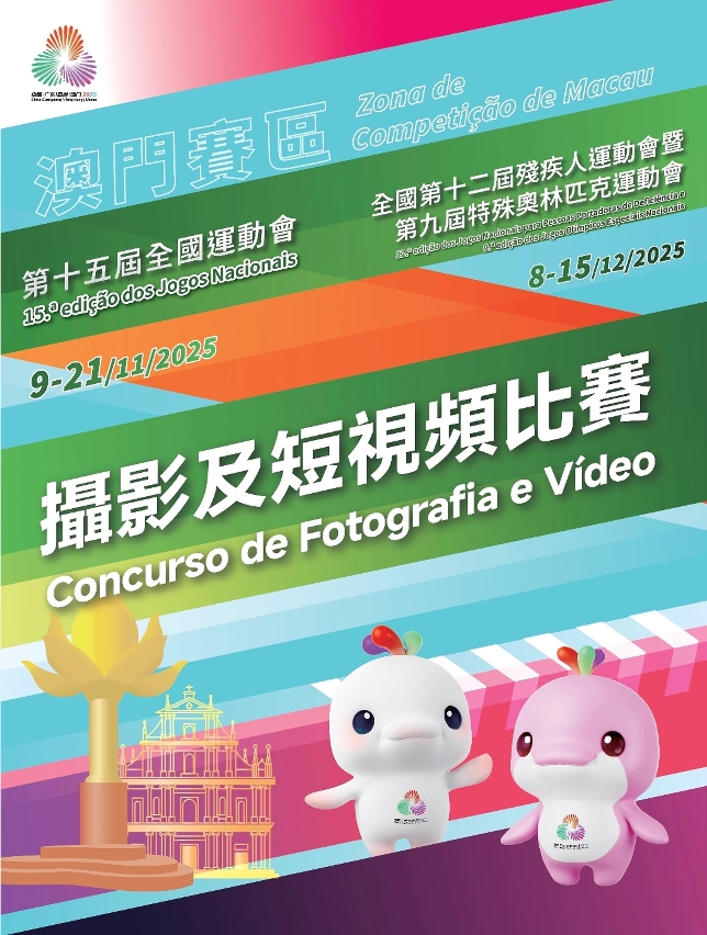 A 15.ª edição dos Jogos Nacionais, 12.ª edição dos Jogos Nacionais para Pessoas Portadoras de Deficiência e 9.ª edição dos Jogos Olímpicos Especiais Nacionais (adiante designada por “15.ª edição dos Jogos Nacionais e Jogos Olímpicos Especiais e para Pessoas com Deficiência”) realizar-se-ão no mês de Novembro e Dezembro, na Região Administrativa Especial de Macau, abrangendo diversas modalidades. Para incentivar a participação e o apoio da população a este grande evento desportivo nacional, o Instituto Cultural, em conjunto com o Gabinete Preparatório para a Organização da Zona de Competição de Macau da 15.ª edição dos Jogos Nacionais e da 12.ª edição dos Jogos Nacionais para Pessoas Portadoras de Deficiência e 9.ª edição dos Jogos Olímpicos Especiais Nacionais, lança um concurso de fotografia e vídeo dedicado a esta ocasião, com o intuito de registar momentos preciosos.