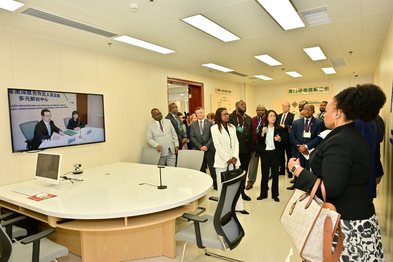 As Delegações visitaram, na Cidade de Shenzhen, o Primeiro Juízo de Circuito do Supremo Tribunal Popular, para se inteirar do funcionamento do sistema dos tribunais do Interior da China, e o Tribunal Popular Intermédio da Cidade de Shenzhen, tendo realizado um colóquio temático sobre a aplicação da inteligência artificial nos tribunais. Para além das actividades acima referidas, as Delegações visitaram ainda a ilha artificial leste da Ponte Hong Kong-Zhuhai-Macau, o pavilhão de exposições sobre o planeamento da zona de cooperação aprofundada entre Guangdong e Macau em Hengqin, o pavilhão de exposições sobre a reforma e abertura da Cidade de Shenzhen, entre outros, para conhecer os sucessos de desenvolvimento do Interior da China e a direcção da sua evolução futura.