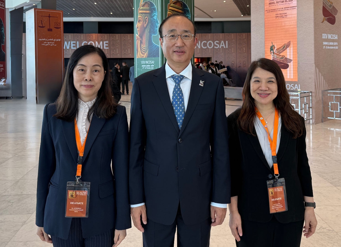 Sob a liderança do Auditor Geral do Gabinete de Auditoria Nacional (GAN), Hou Kai, a Comissária da Auditoria da RAEM, Ao Ieong U, e a Chefe da Gabinete, Ho Ioc San, foram convidadas a participar na delegação da República Popular da China e estiveram presentes no XXV Congresso da Organização Internacional de Instituições Superiores de Controlo (INCOSAI, na sigla inglesa), em Sharm El-Sheikh, no Egipto, de 26 a 30 de Outubro, onde trocaram impressões com representantes dos diversos países sobre as questões relativas à gestão e ao desenvolvimento das instituições superiores de controlo.