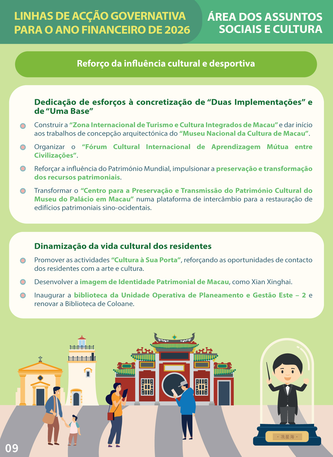 • linhas de acção governativa da área dos assuntos sociais e cultura para 2026-09