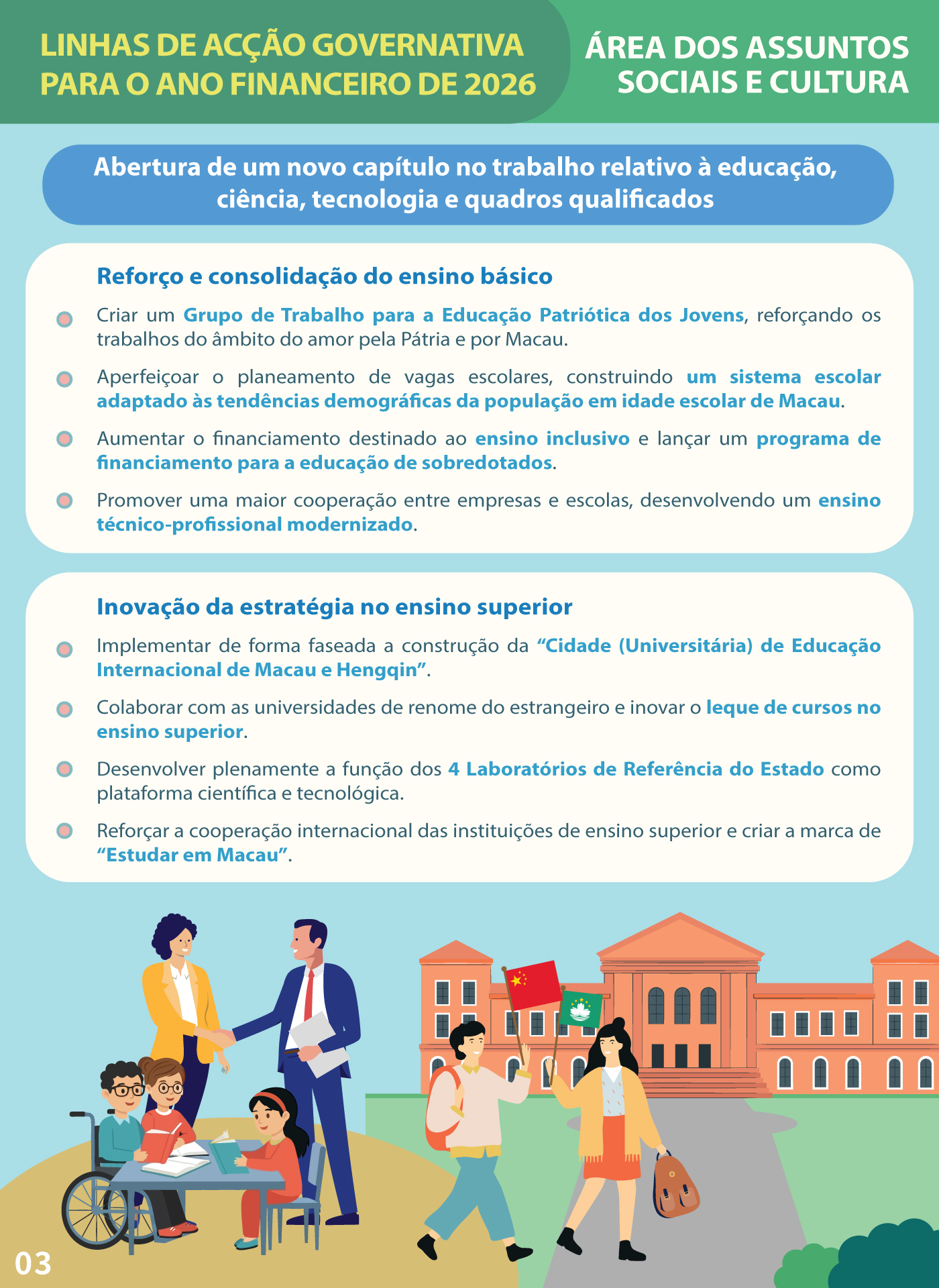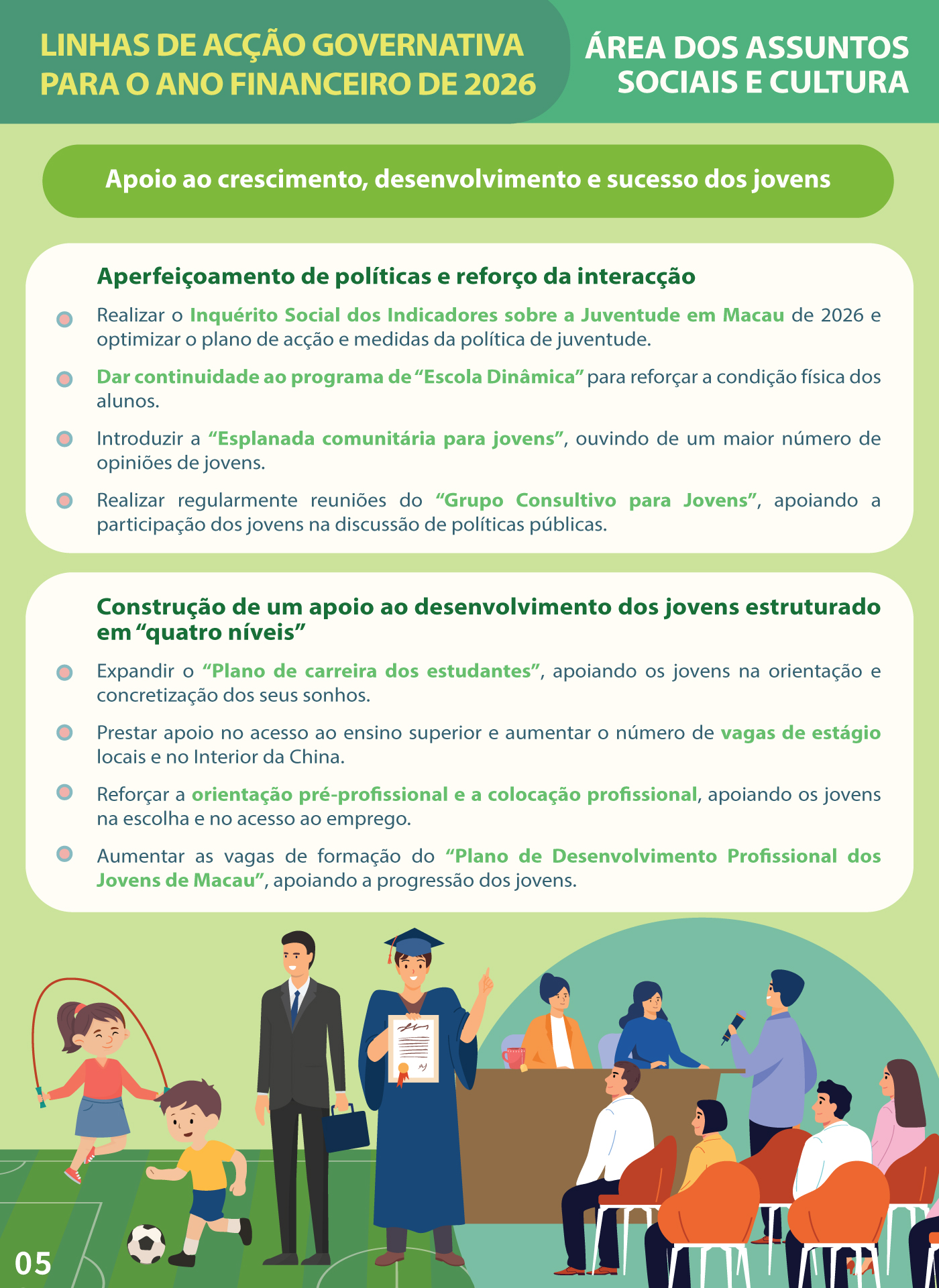 【Infografia】Linhas de Acção Governativa da Área dos Assuntos Sociais e Cultura para 2026