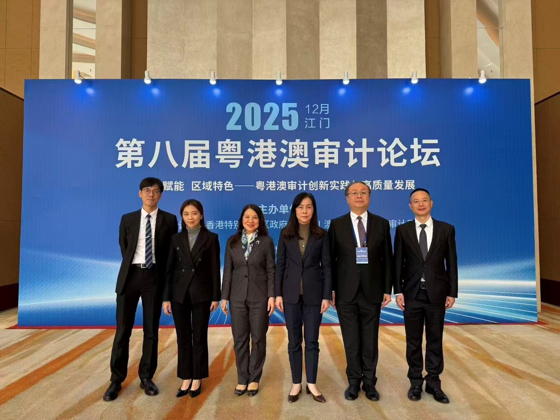 A convite do Departamento de Auditoria da Província de Guangdong, nos dias 2 a 4 de Dezembro, a Comissária da Auditoria, Ao Ieong U, liderou uma delegação do Comissariado de Auditoria (CA) para participar no 8.º Fórum de Auditoria Guangdong-Hong Kong-Macau 2025, que teve lugar na cidade de Jiangmen, onde as autoridades de auditoria das três regiões partilharam conhecimentos técnicos e trocaram experiências.